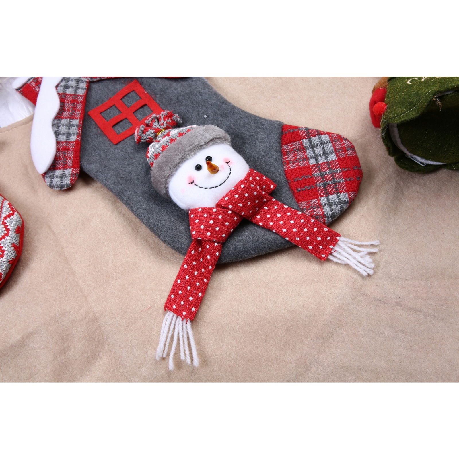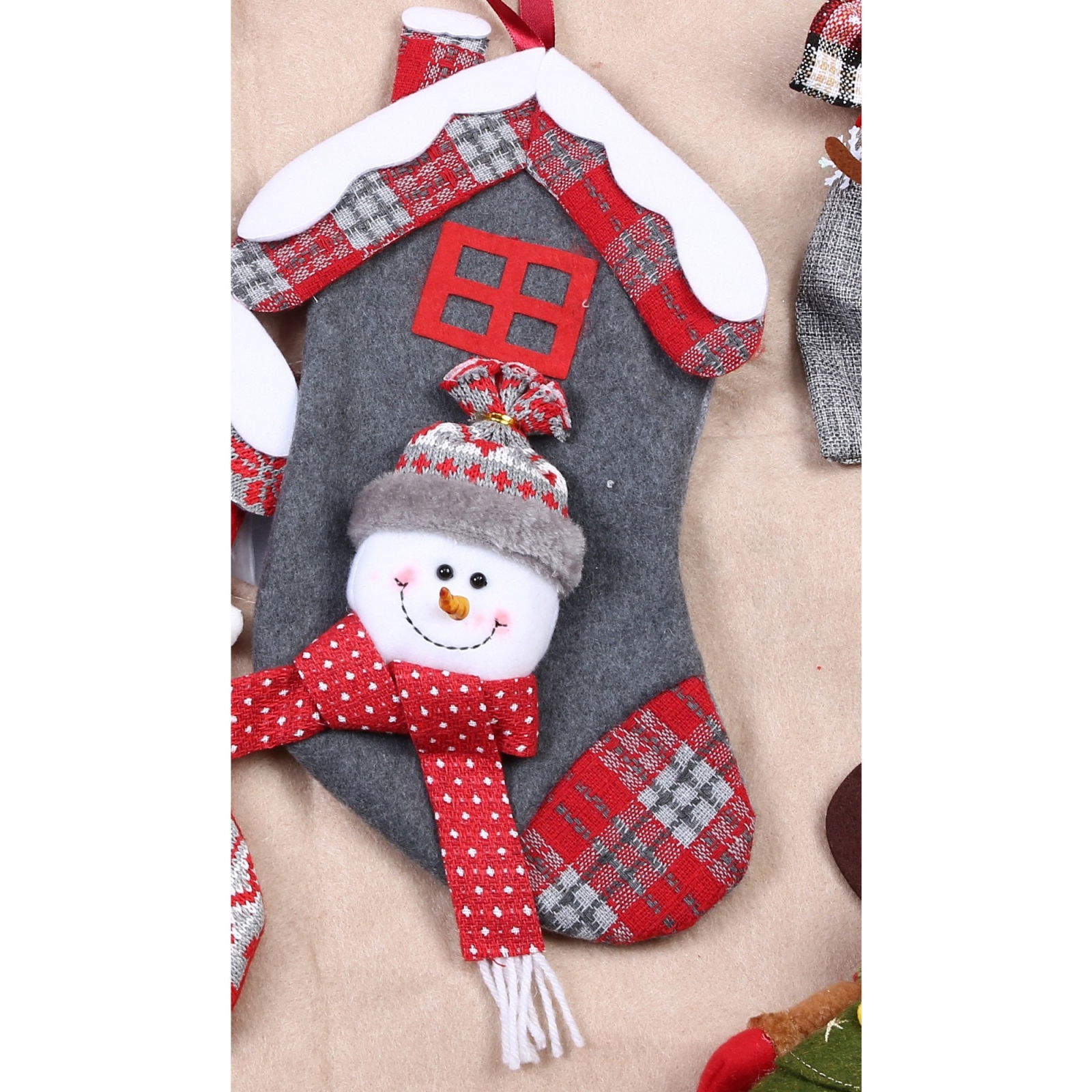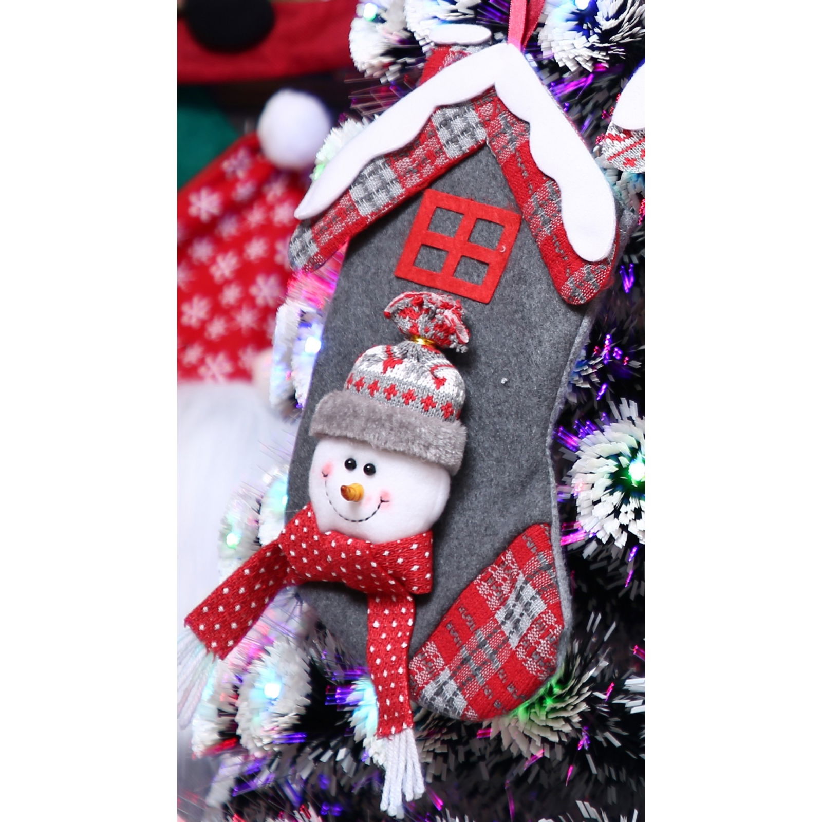 Ciorap Cadouri, model casa, culoare gri, imprimeu om de zapada, marimea 15x30 cm, Flippy