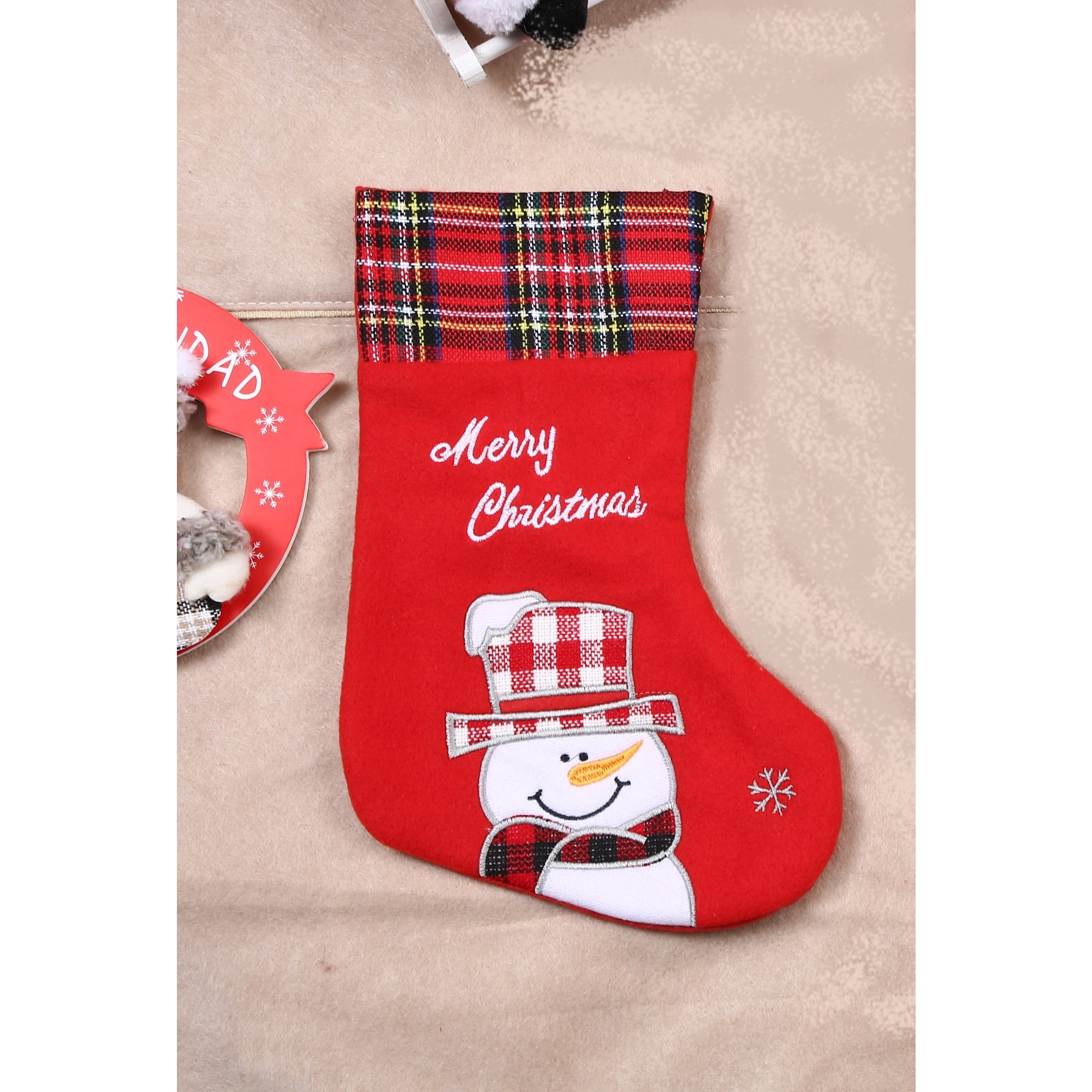Ciorap Cadouri, culoare rosie, imprimeu om de zapada,marimea 15x30 cm, Flippy