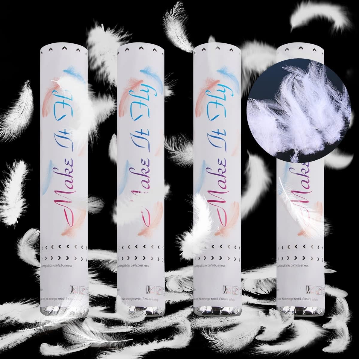 Tubul de confetti Flippy cu pene albe este alegerea perfectă pentru a aduce un strop de magie și eleganță evenimentelor tale. Cu un design ușor de folosit și un efect spectaculos, acesta va transforma orice ocazie într-un moment memorabil.