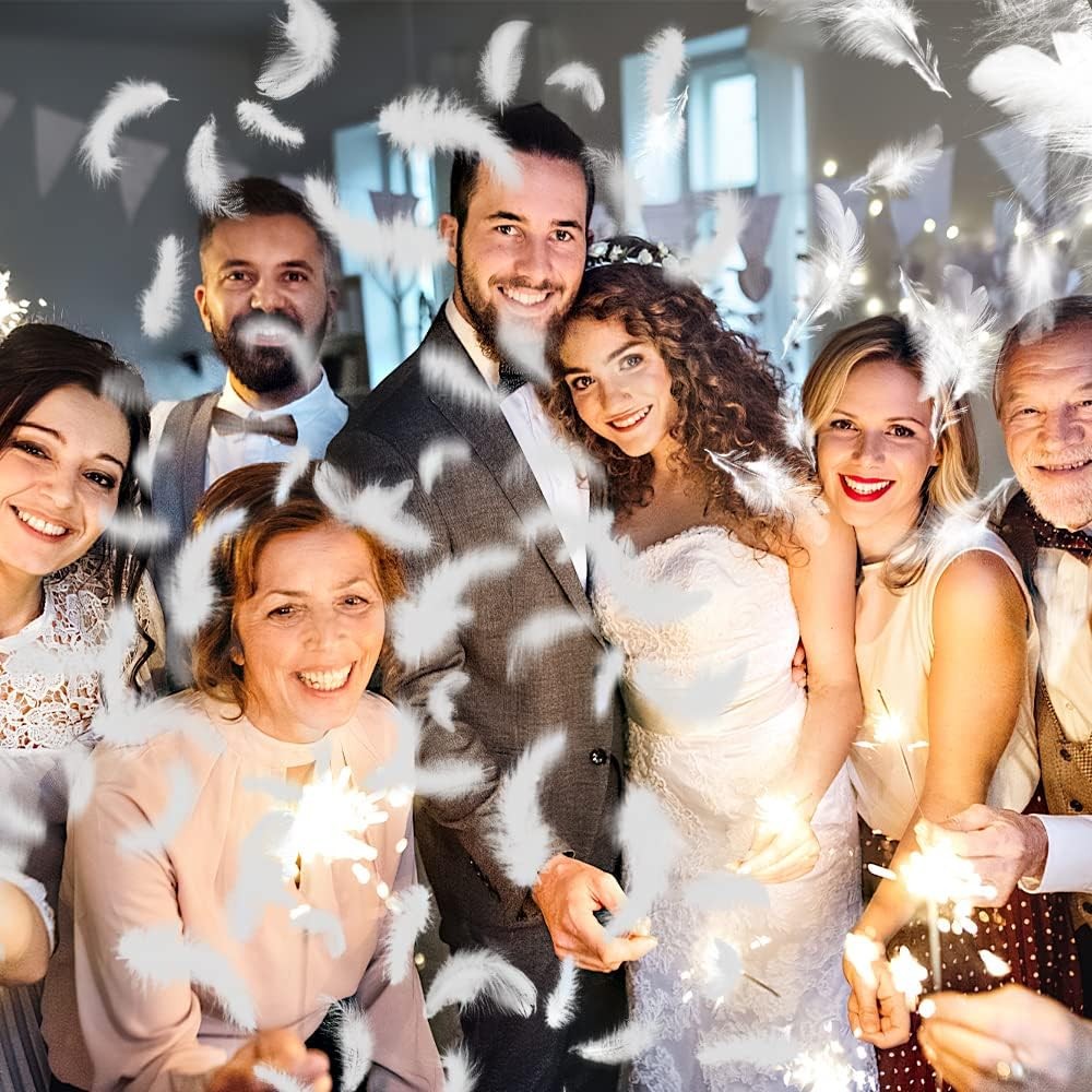• Confetti sub formă de pene albe, aducând un efect vizual impresionant și delicat.