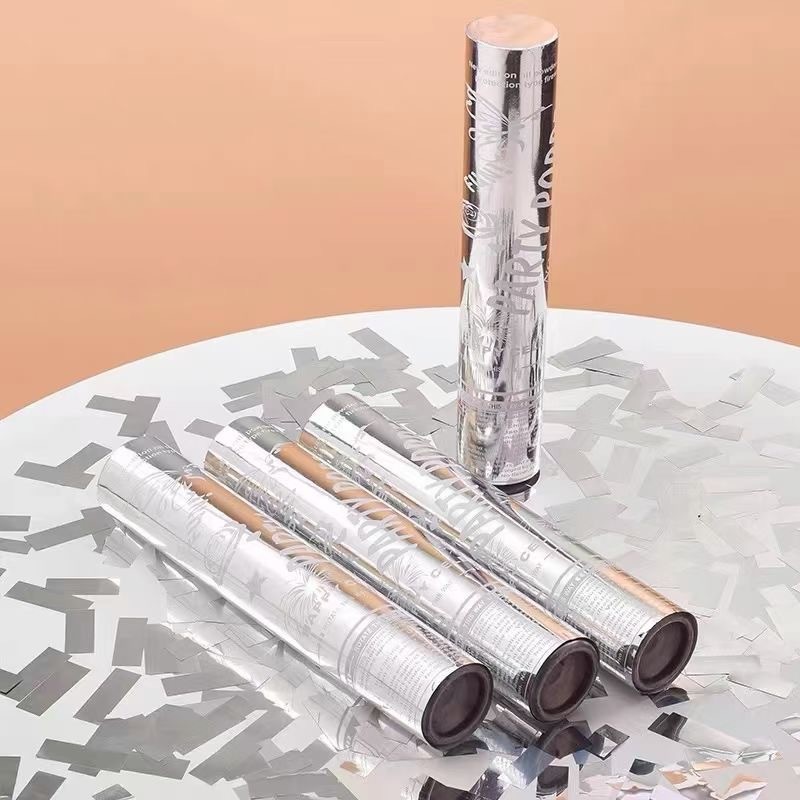 Adaugă o notă spectaculoasă petrecerii tale cu Tubul de Confetti Flippy Party Popper 30 cm, prevăzut cu confetti argintii lucioase și 100% rezistente la foc! Ideal pentru evenimente în interior sau exterior, acest tub oferă un efect vizual impresionant și maximă siguranță.