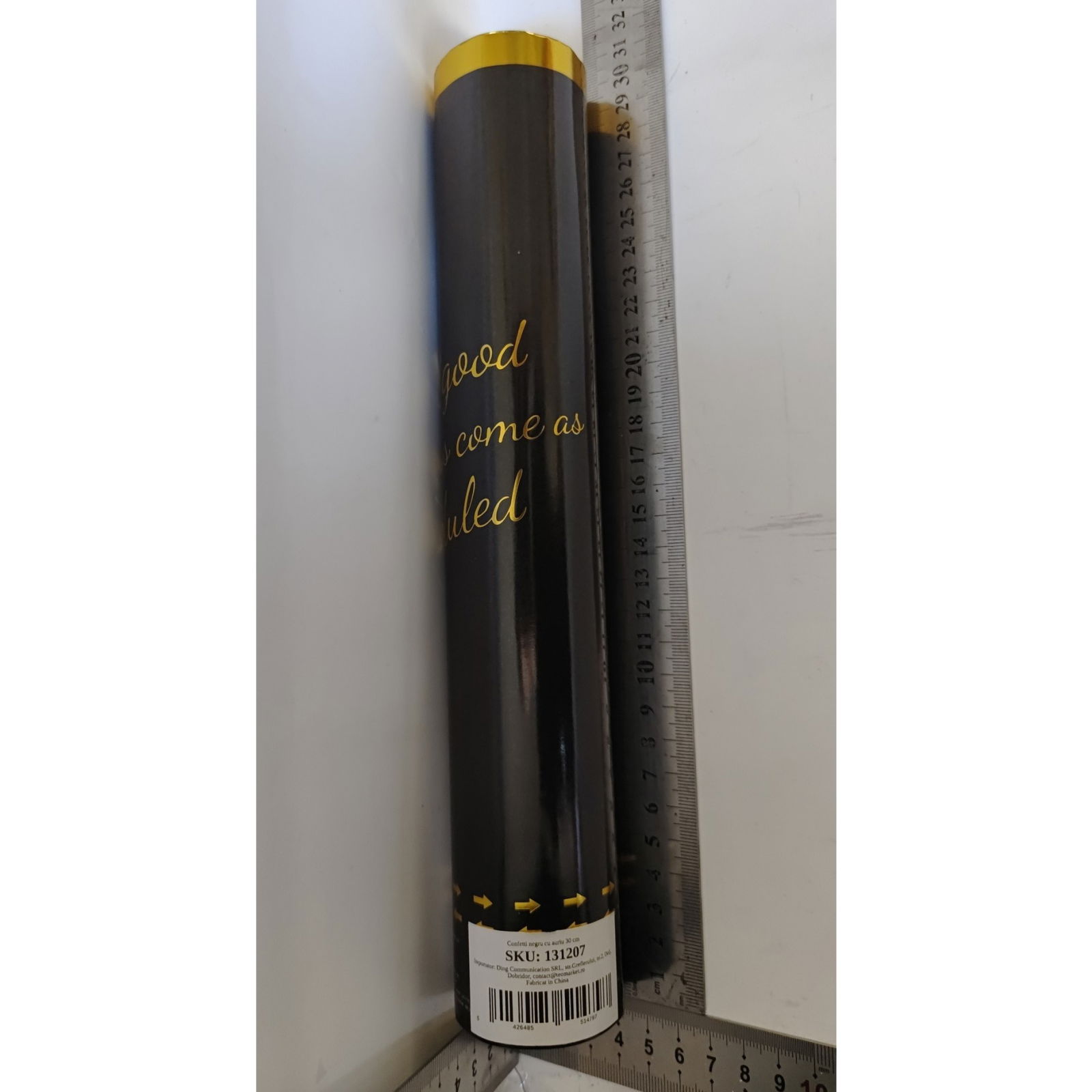 Tun Confetti Petrecere, Flippy, Lungime 30 cm, Negru/Auriu