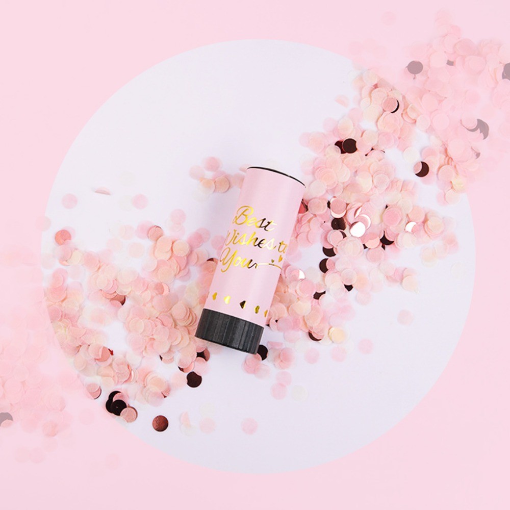 Tun de Confetti, Flippy, Best Wishes, 11 x 4 cm, Model Buline din Hârtie și Folie, Roz