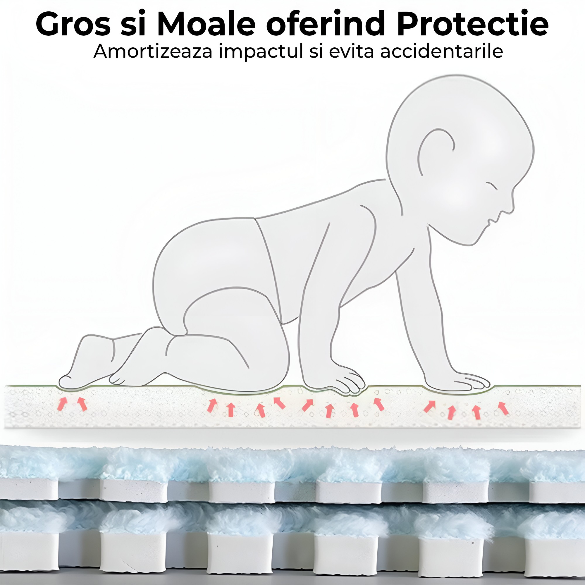 - Siguranță și confort: Aceste covorașe nu contaminează și sunt ideale pentru persoanele sensibile, oferind un mediu sigur pentru copii.