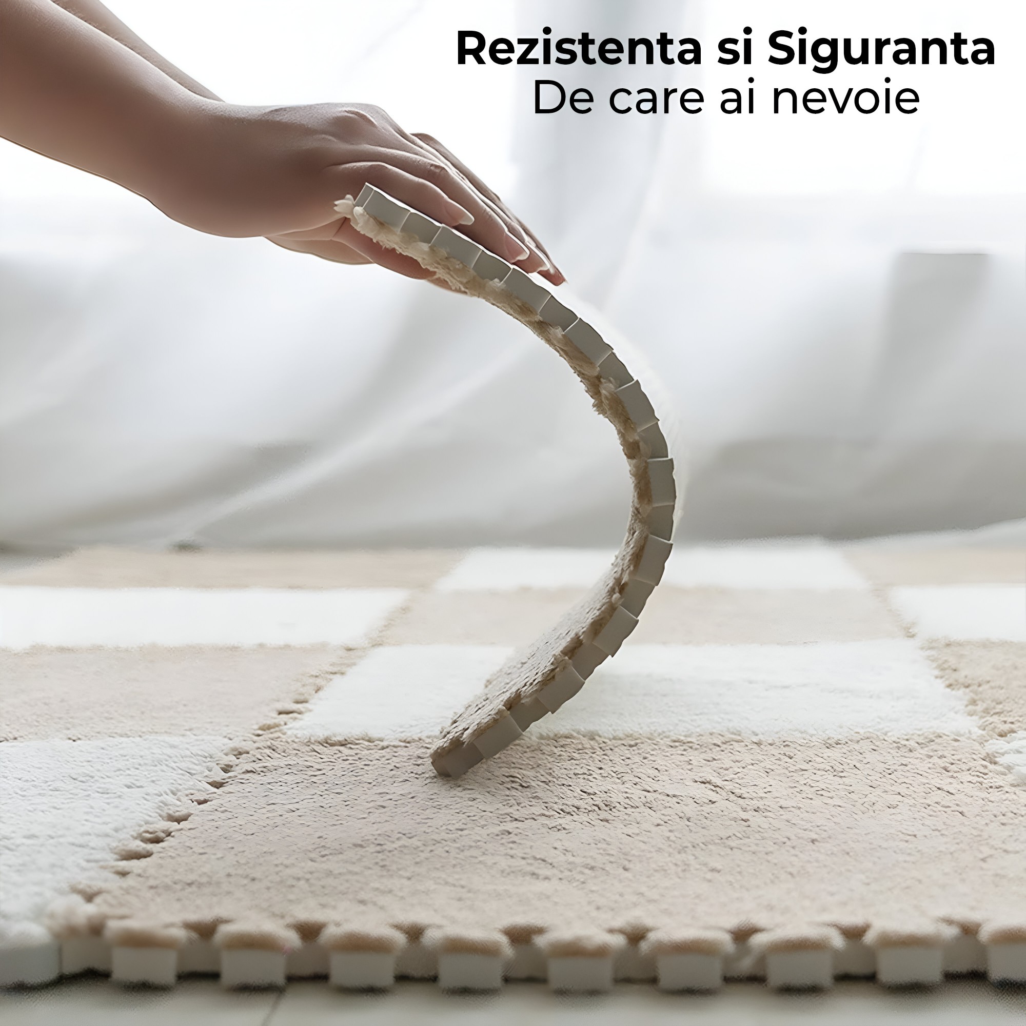- Design modular: Datorită formei lor puzzle, poți combina și adapta covorașele în funcție de nevoile tale, creând un spațiu personalizat și creativ.
