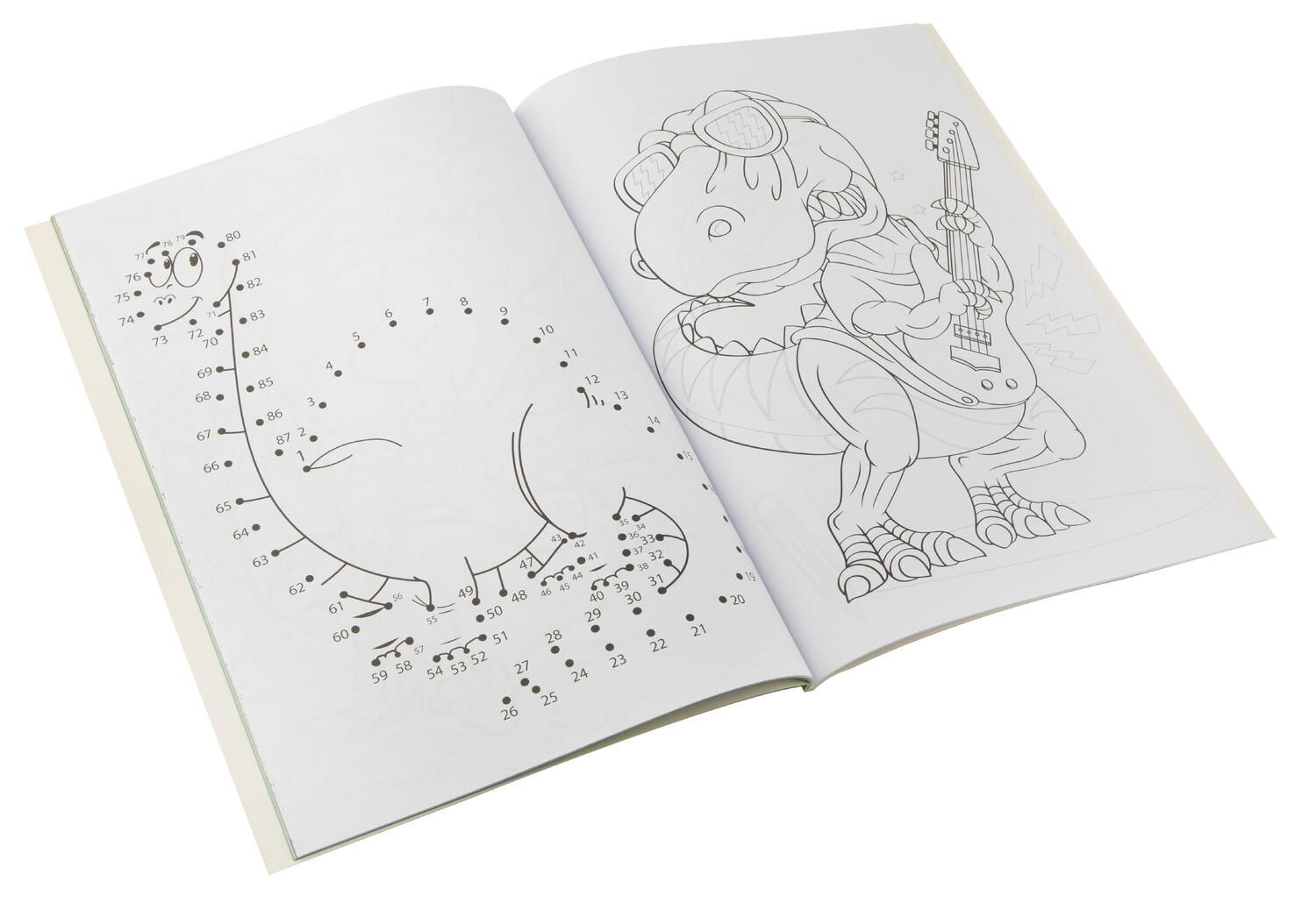 cartea include imagini de colorat, precum si alte activitati precum identificarea diferentelor, labirinturi sau desenarea elementelor punct cu punct