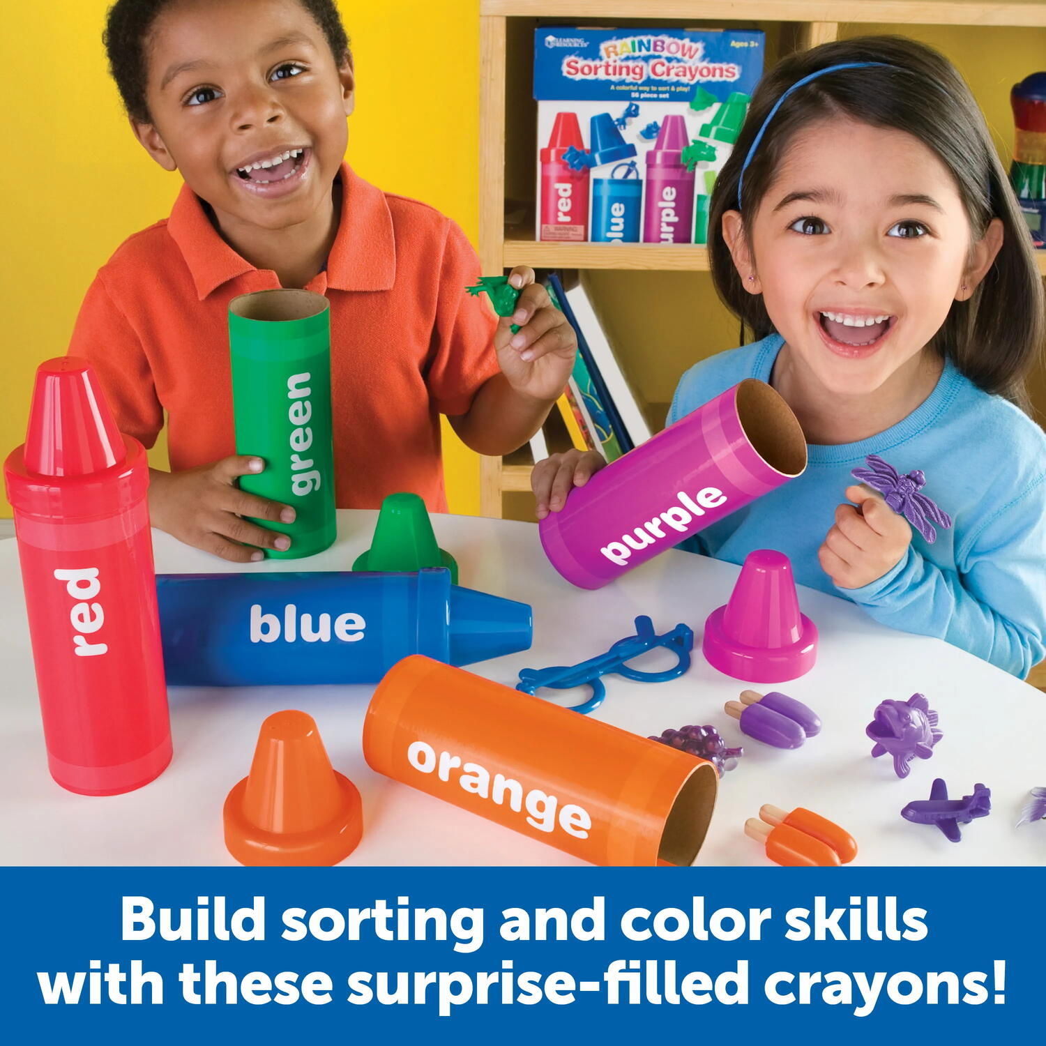 Invitati copiii sa verifice in interiorul fiecarui creion pentru a descoperi diferite coduri de culoare-figurine pentru potrivire, sortare si joc imaginativ