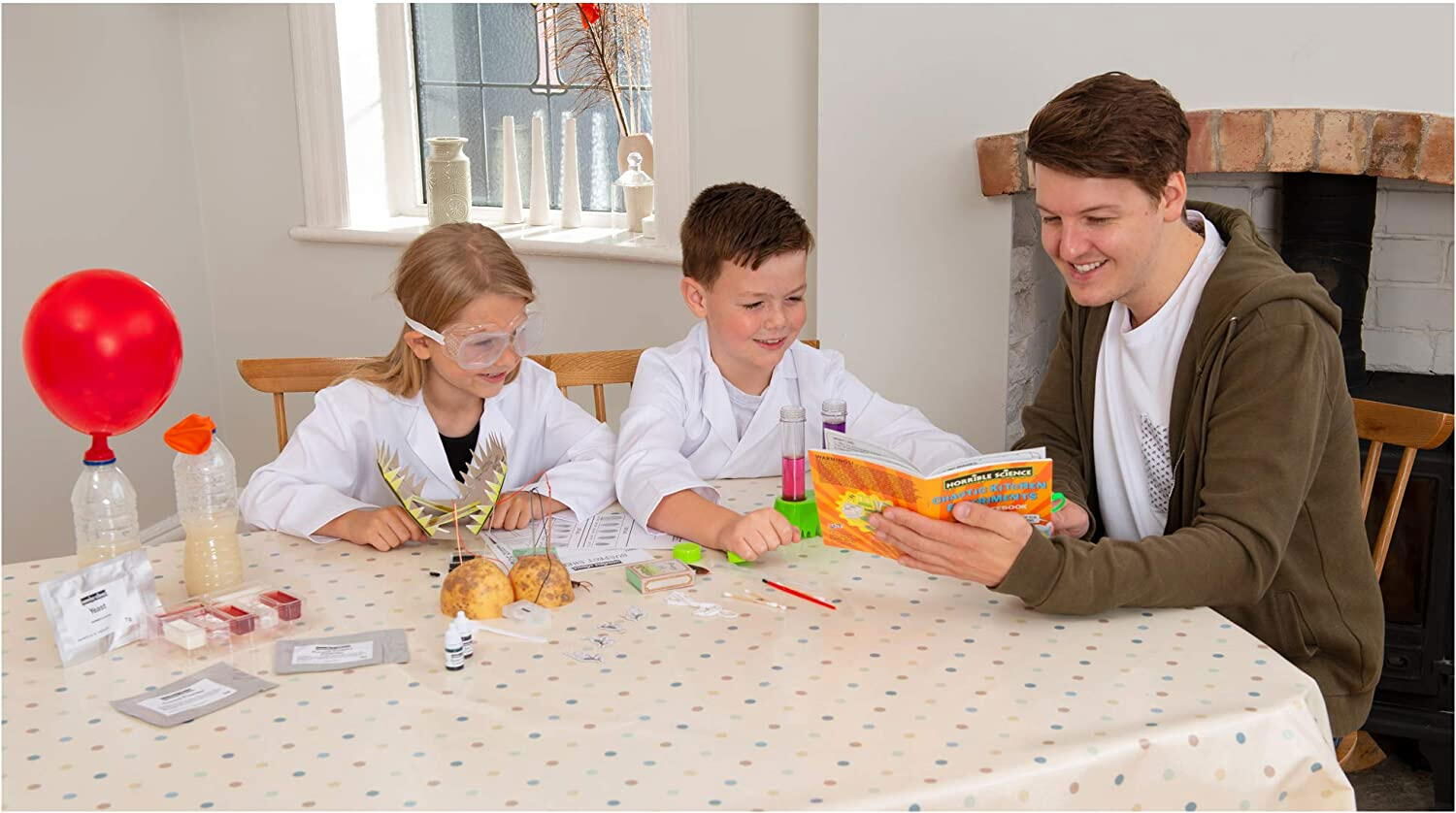 kit-ul este perfect pentru descoperirea relatiei cauza-efect si pentru familiarizarea cu notiuni primare din chimie
