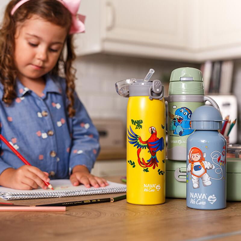 Sticla Nava de 400 ml „We Care” va încânta atât tinerii cât și bătrânii. Este fabricat din aluminiu, cu un strat protector la interior pentru o mare durabilitate si protectie impotriva temperaturilor ridicate si a bauturilor acide. Fără BPA, ftalați sau alte substanțe nocive, este complet sigur pentru depozitarea igienică a băuturilor. Cu capac de protecție și gura de scurgere pentru a preveni scurgerile și pentru ușurință în utilizare. Este foarte usoara, ideala pentru micii nostri prieteni, pentru a-l folosi in fiecare zi la cresa, la scoala, la plimbari si de asemenea pentru interiorul casei, deoarece nu se rupe si este complet impermeabil. De asemenea, este o idee interesantă de cadou de ziua de naștere pentru copiii mici, cărora cu siguranță le va plăcea! În ceea ce privește curățarea, pur și simplu scoateți capacul și spălați-vă manual cu un burete moale.Nu puneți în cuptorul cu microunde, în mașina de spălat vase sau în congelator.