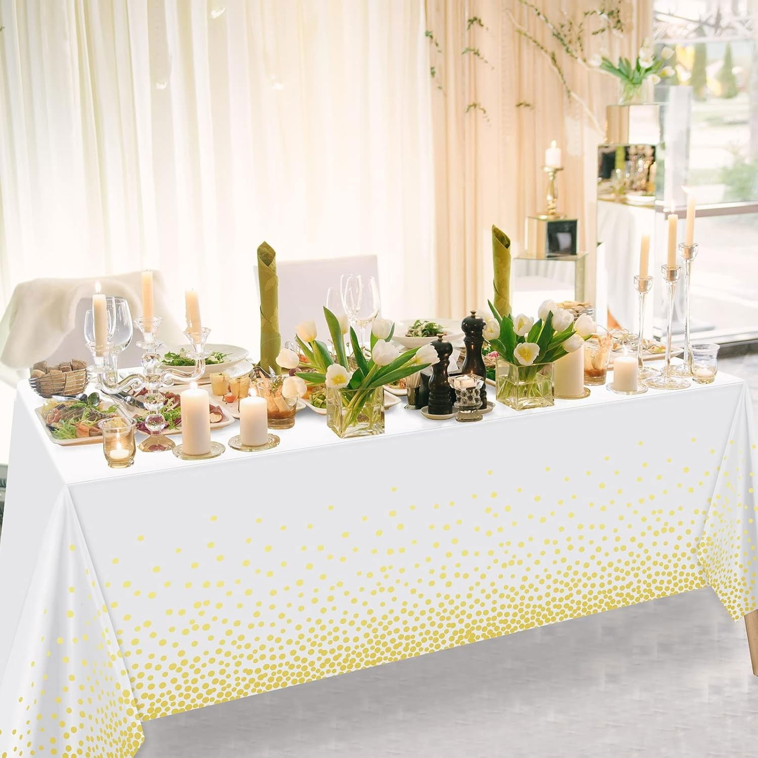 Transformă masa ta într-un decor elegant și festiv cu această față de masă Flippy din PEVA, decorată cu un imprimeu modern cu buline. Impermeabilă și anti-pete, este ideală pentru evenimente speciale precum nunți, botezuri, petreceri aniversare sau cine elegante.