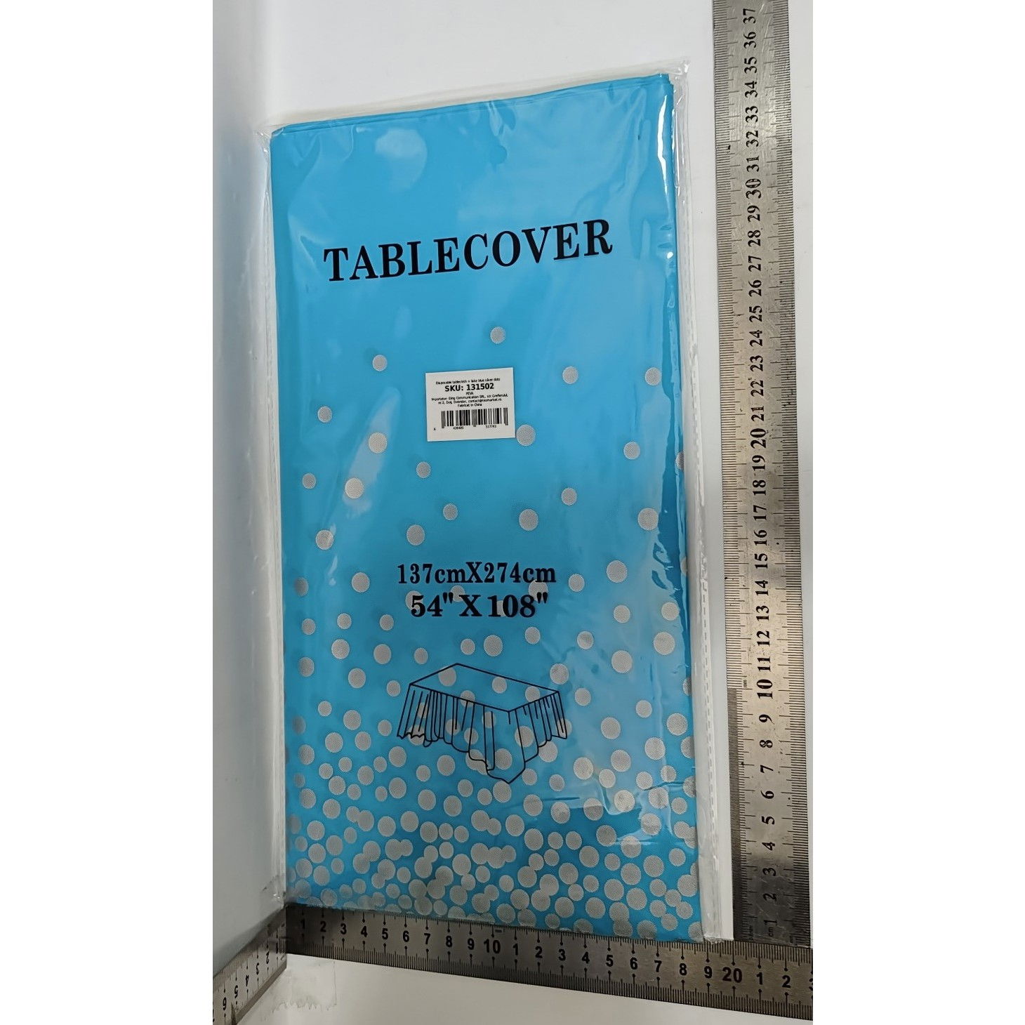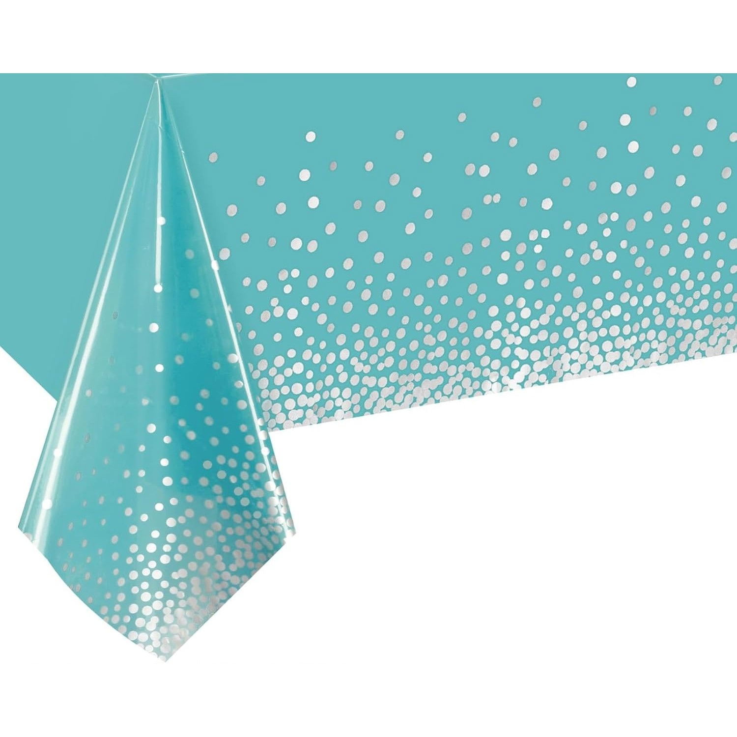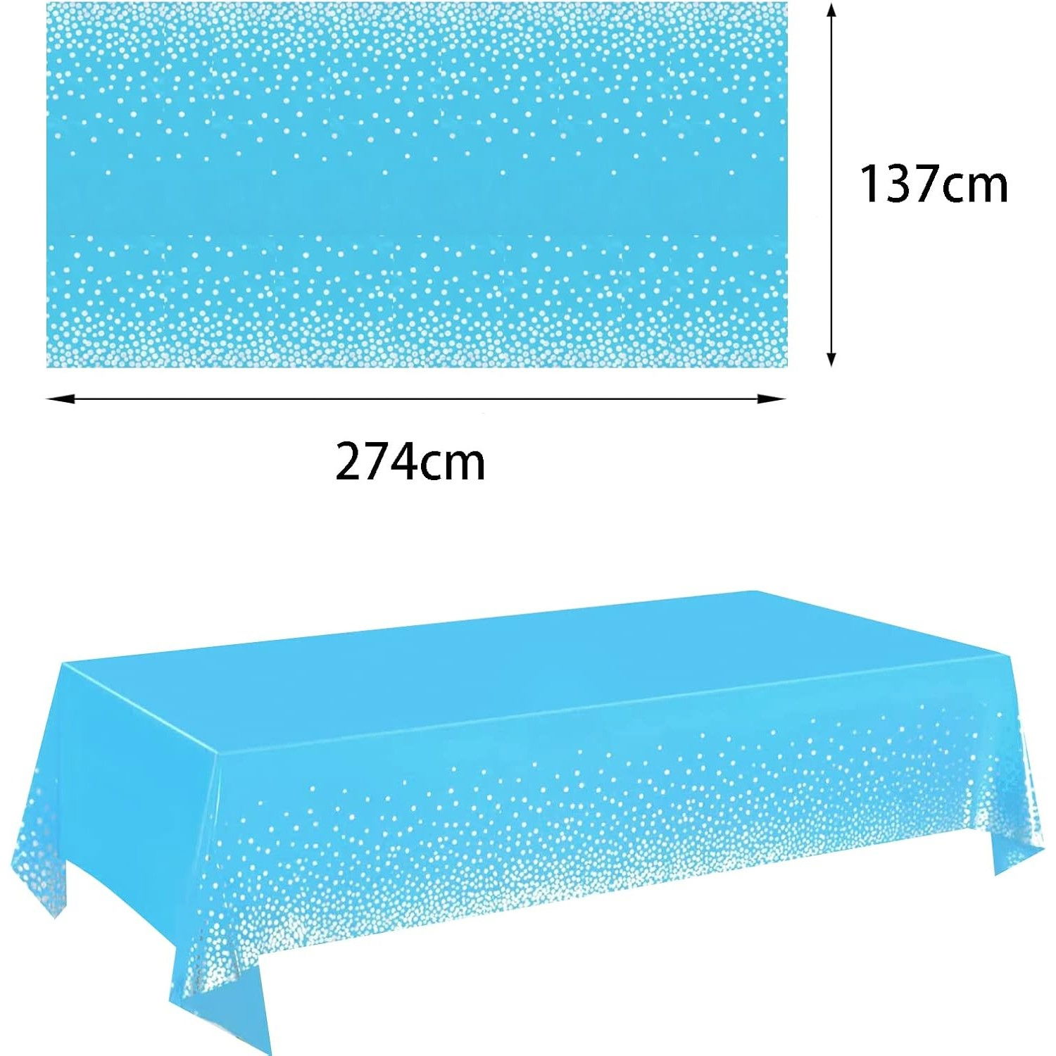 Fata de Masa, Flippy, din PEVA, Imprimeu Buline Argintii, 137 x 274 cm, Impermeabila, Fara Pete, Curatare Rapida, Albastru