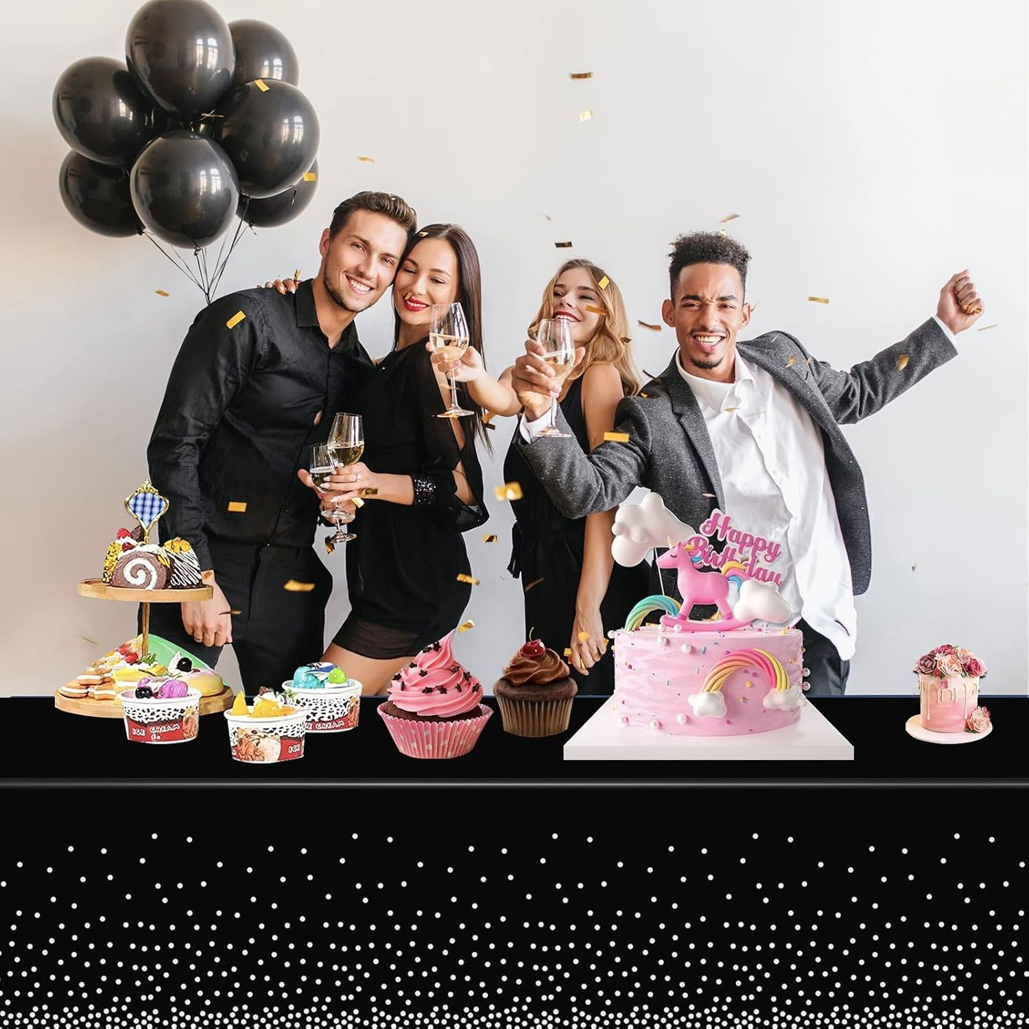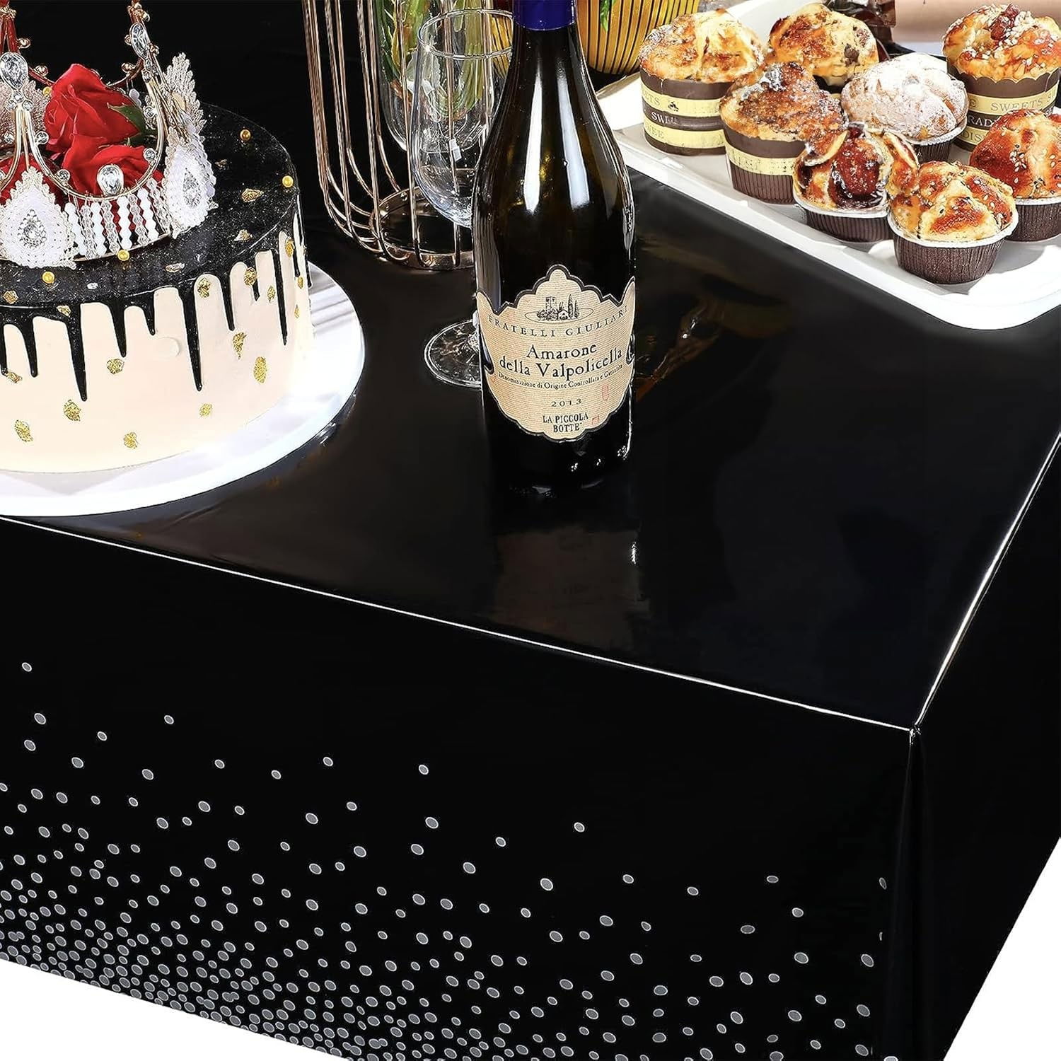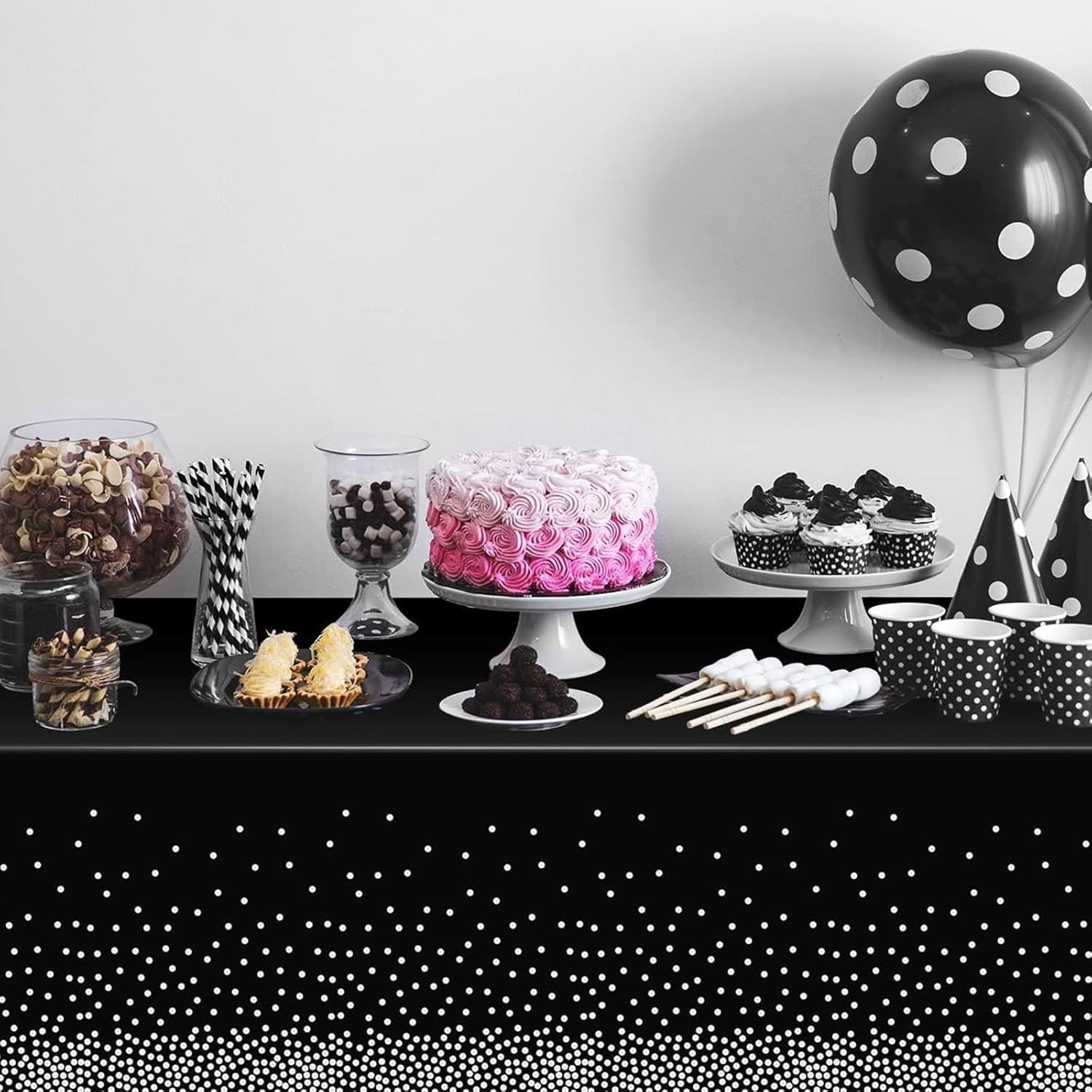 Fata de Masa, Flippy, din PEVA, Imprimeu Buline Argintii, 137 x 274 cm, Impermeabila, Fara Pete, Curatare Rapida, Negru