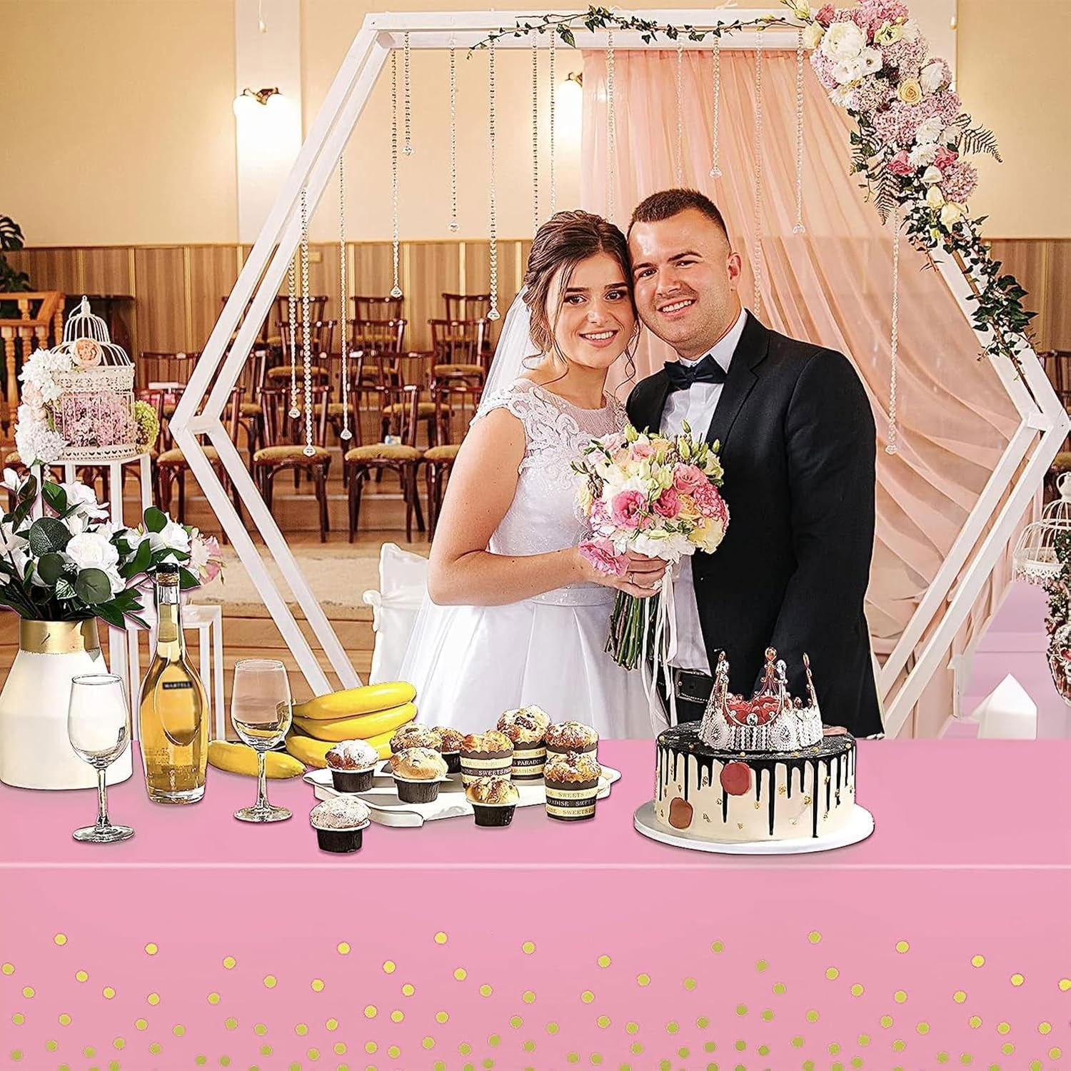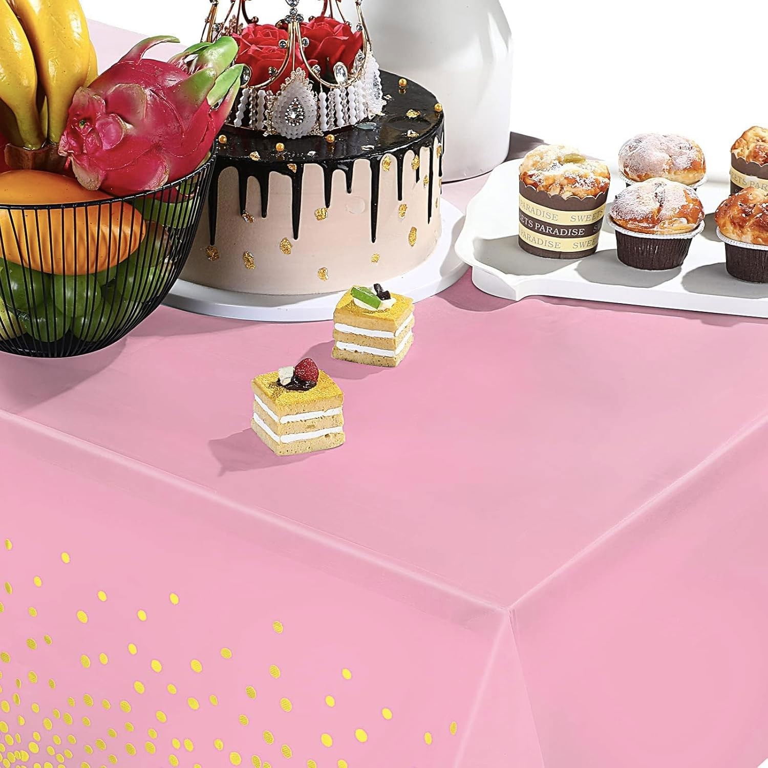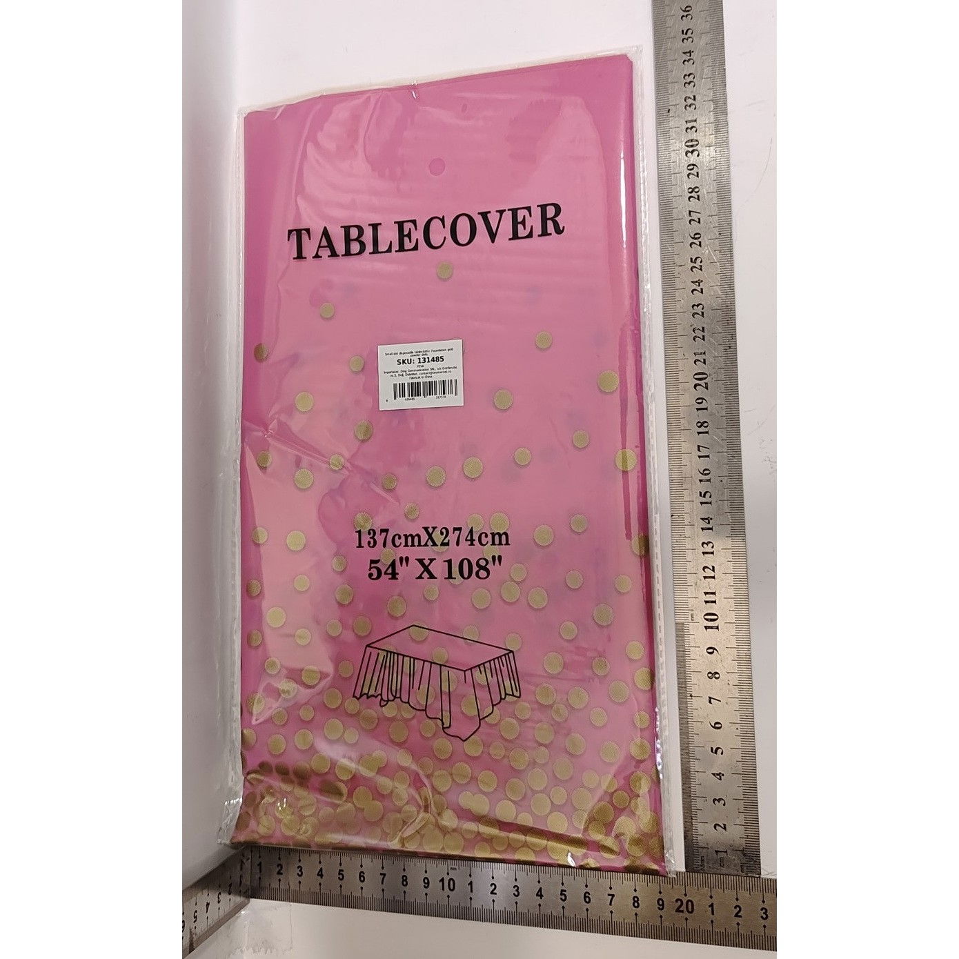 Fata de Masa, Flippy, din PEVA, Imprimeu Buline Aurii, 137 x 274 cm, Impermeabila, Fara Pete, Curatare Rapida, Roz