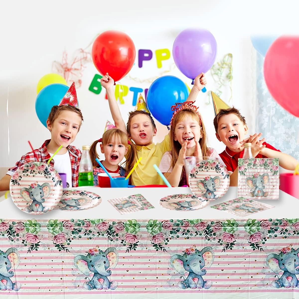 Adaugă un plus de culoare și veselie petrecerii tale cu această față de masă cu imprimeu elefanți!