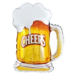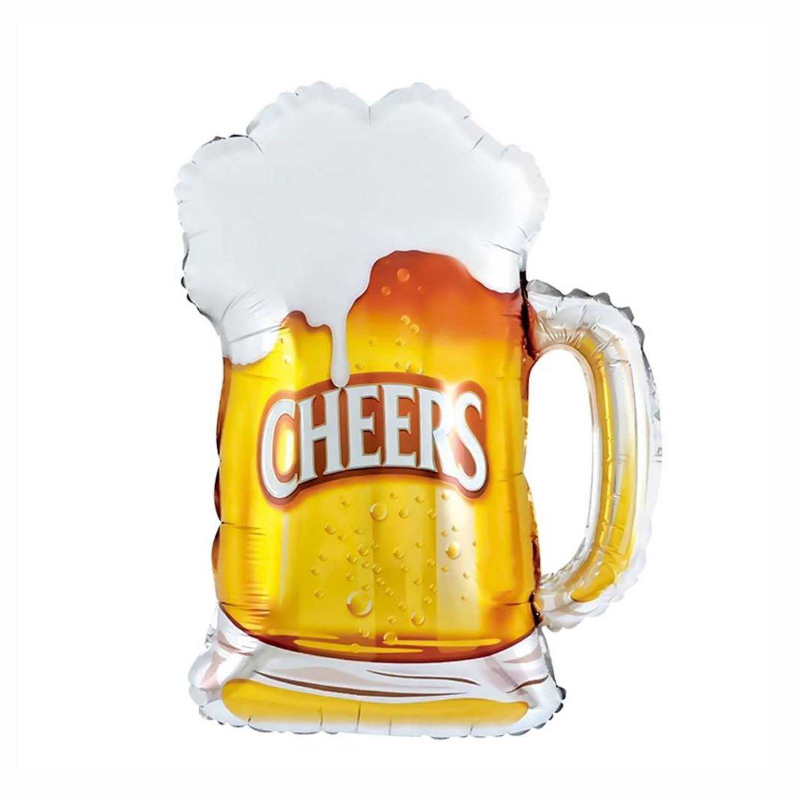 Balon din Folie Metalizata, Flippy, Figurina Halba de Bere, Model Cheers, Tematica Petrecere, 58x73 cm, Ambalaj Individual, Pai Inclus, Umflare cu Aer sau Heliu, Galben