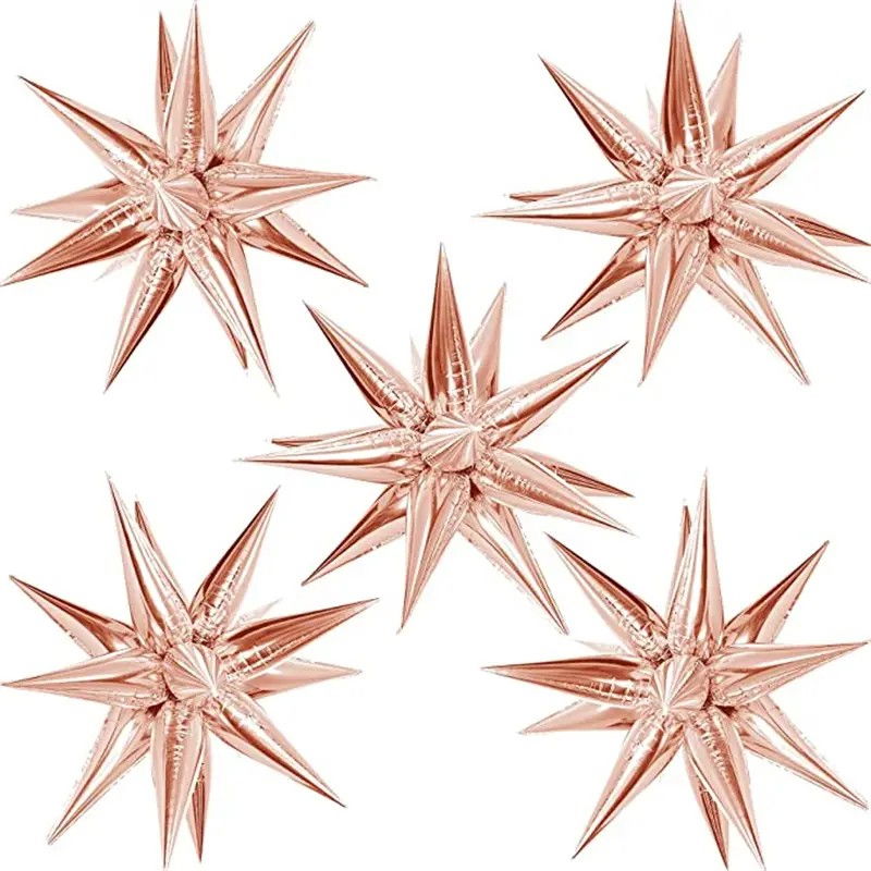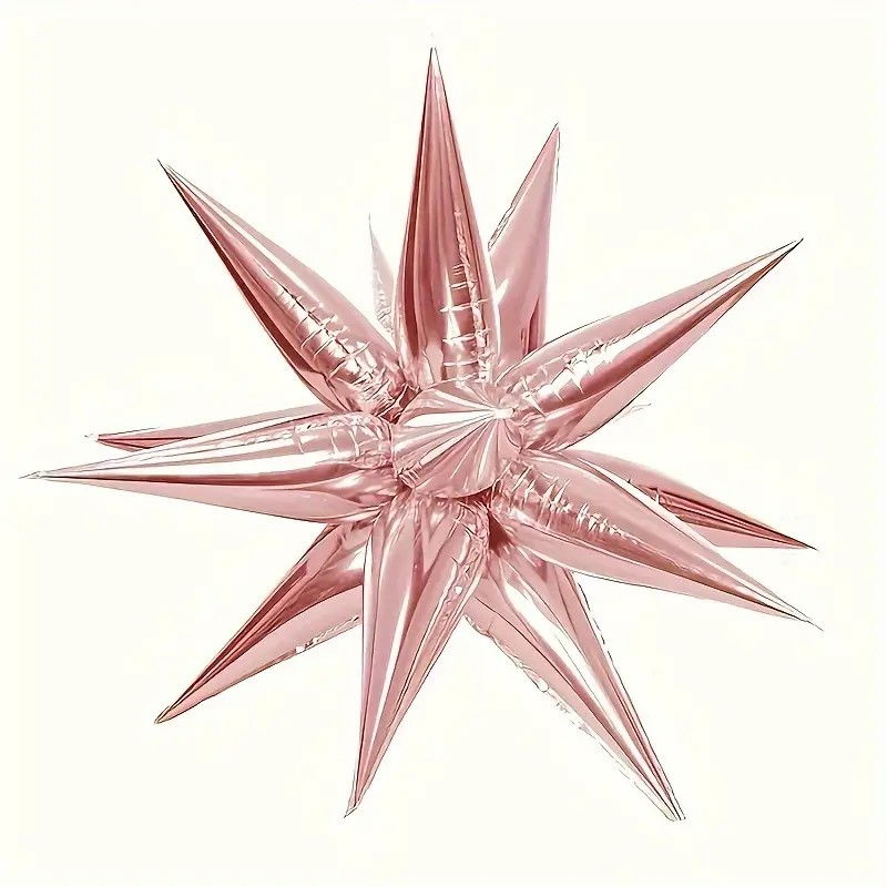 Balon din Folie Metalizata, Flippy, Figurina Stea 3D, 66 cm, Ambalaj Individual, Pai inclus, Umflare cu Aer sau Heliu, Roz