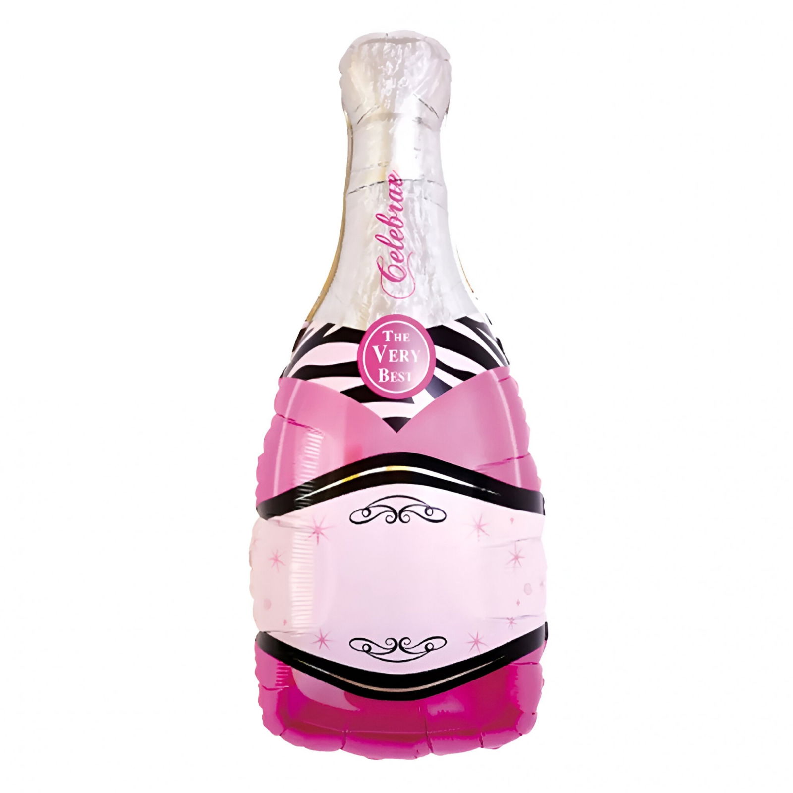 Balon din Folie Metalizata, Flippy, Figurine, Model Sticla de Sampanie, 49x100 cm, Ambalaj Individual, Pai Inclus, Umflare cu Aer sau Heliu, Mov