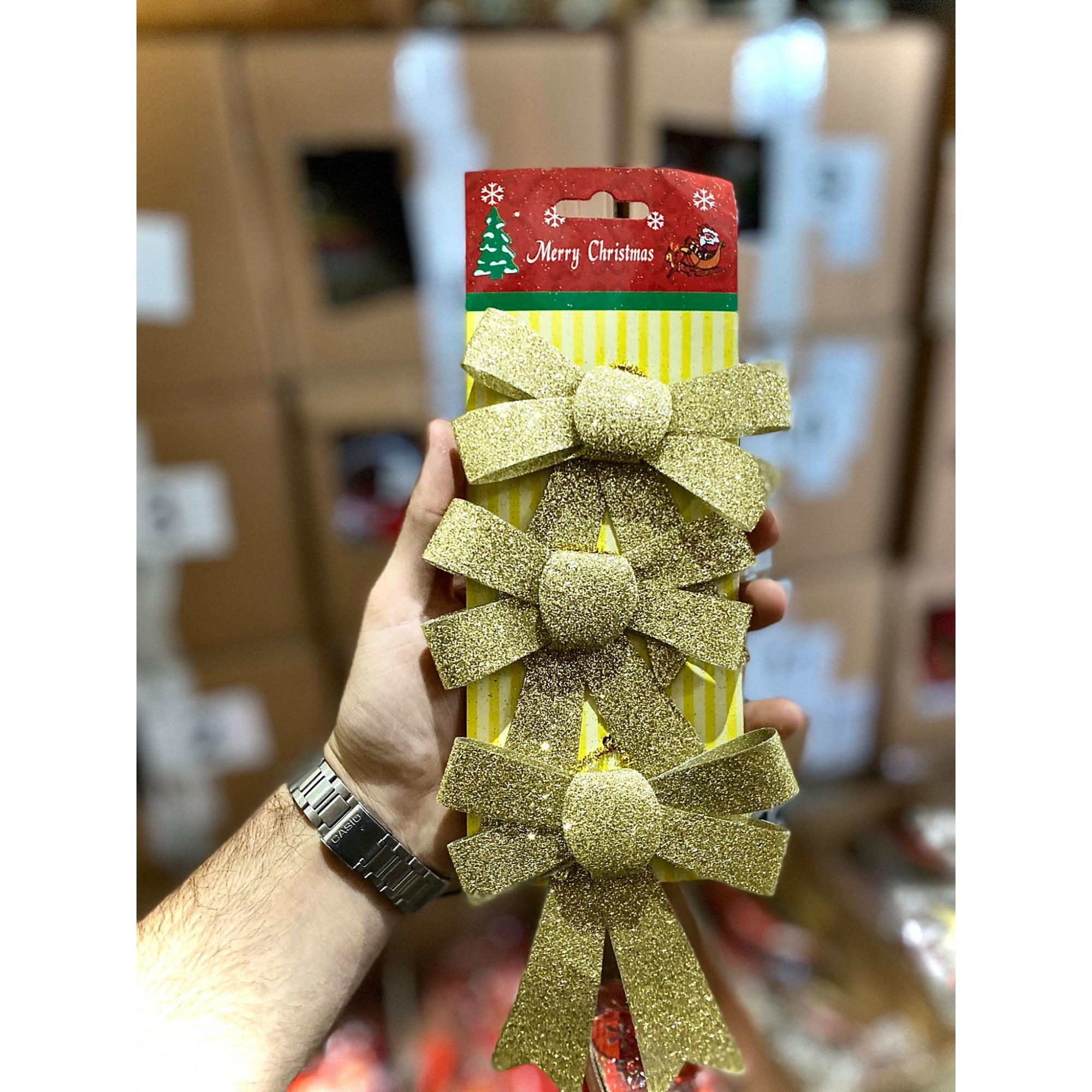 Set 3 fundite pentru brad, Aurii, cu sclipici, 10 x 11 cm, din poliester, Flippy