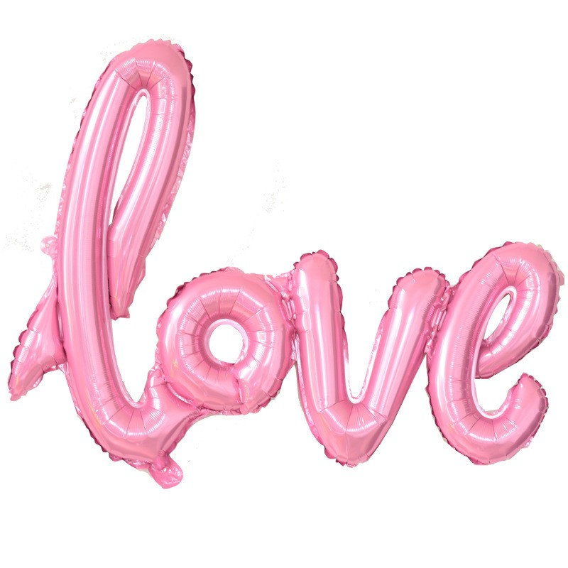 Balon din Folie Metalizata, Flippy, Model Love scris de mana, 102x65 cm, Tematica Ziua Îndrăgostiților, Ambalaj Individual, Pai Inclus, Umflare cu Aer sau Heliu, Roz