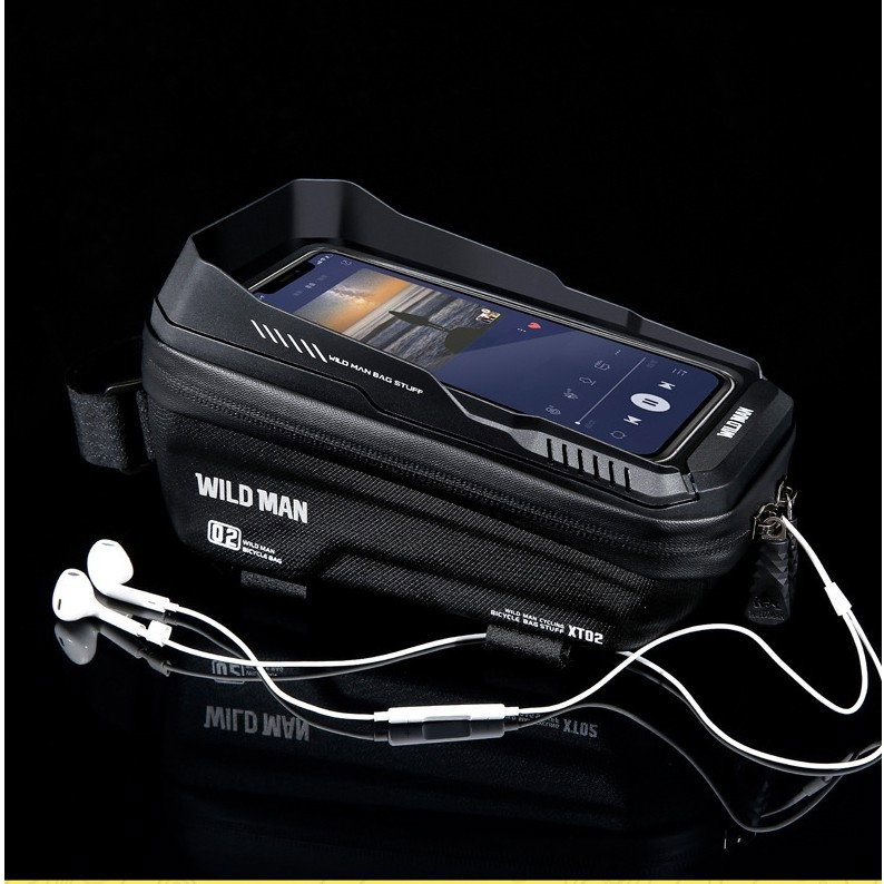 Borseta pentru bicicleta cu suport de telefon Flippy, capcitate 1L, 20.5x11.1x10.5 cm, cu spatiu de stocare, protectie waterproof, ecran tactil, fixare in 3 locuri, protectie lumina, orificiu casti, n