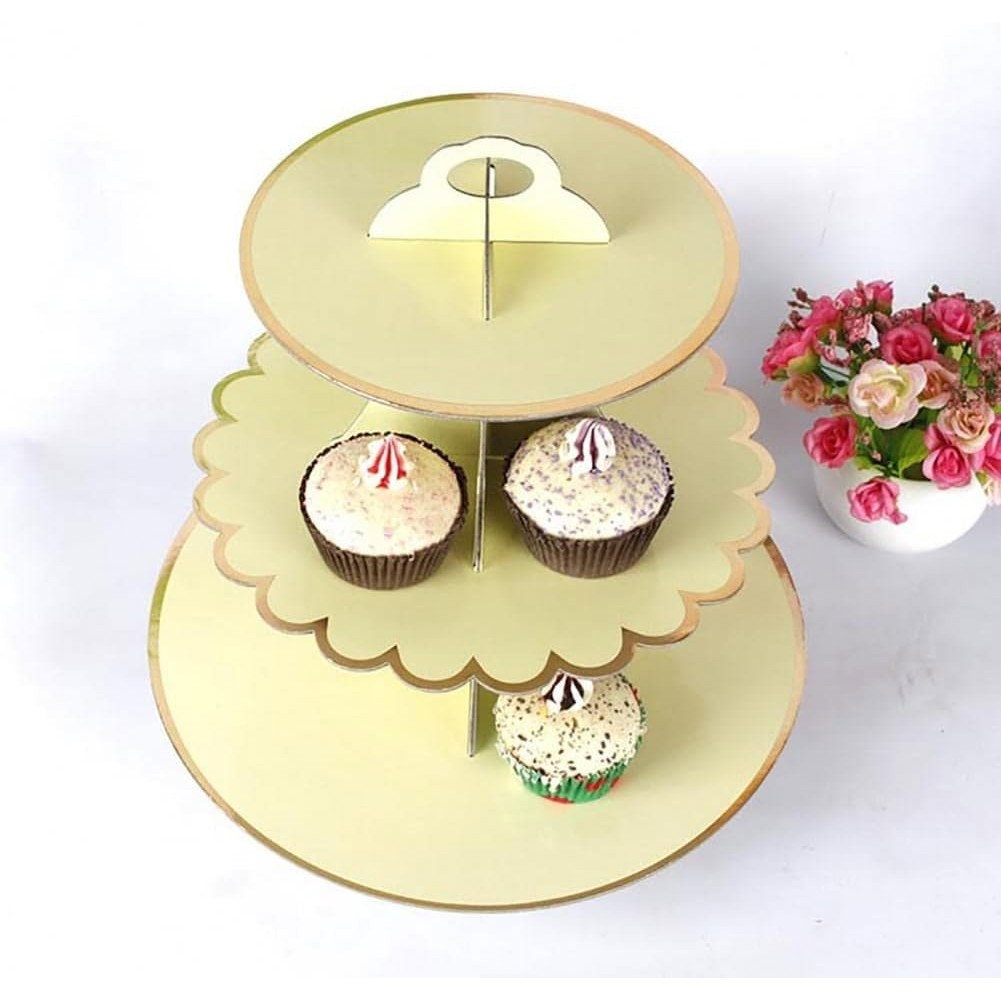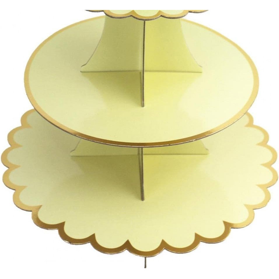 Etajera pentru Prajituri, Flippy, din Carton, 3 Nivele, 16/22/29 cm Diametru, Inaltime 38 cm, Galben