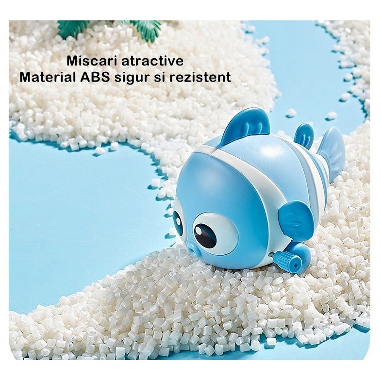 Învățare prin experiență: Jucăria "Flippy" nu doar aduce distracție, ci și oportunități de învățare prin experiență. Copiii vor putea observa cum mișcările pestișorului sunt generate de acționarea cheiței. Această experiență simplă îi va familiariza cu conceptul de cauză și efect, stimulând gândirea logică și creativă. În timp ce se bucură de joc, vor dezvolta în mod natural abilități de observație și analiză, contribuind la dezvoltarea lor cognitivă.