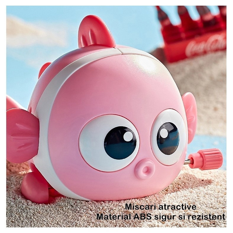 Învățare prin experiență: Jucăria "Flippy" nu doar aduce distracție, ci și oportunități de învățare prin experiență. Copiii vor putea observa cum mișcările pestișorului sunt generate de acționarea cheiței. Această experiență simplă îi va familiariza cu conceptul de cauză și efect, stimulând gândirea logică și creativă. În timp ce se bucură de joc, vor dezvolta în mod natural abilități de observație și analiză, contribuind la dezvoltarea lor cognitivă.