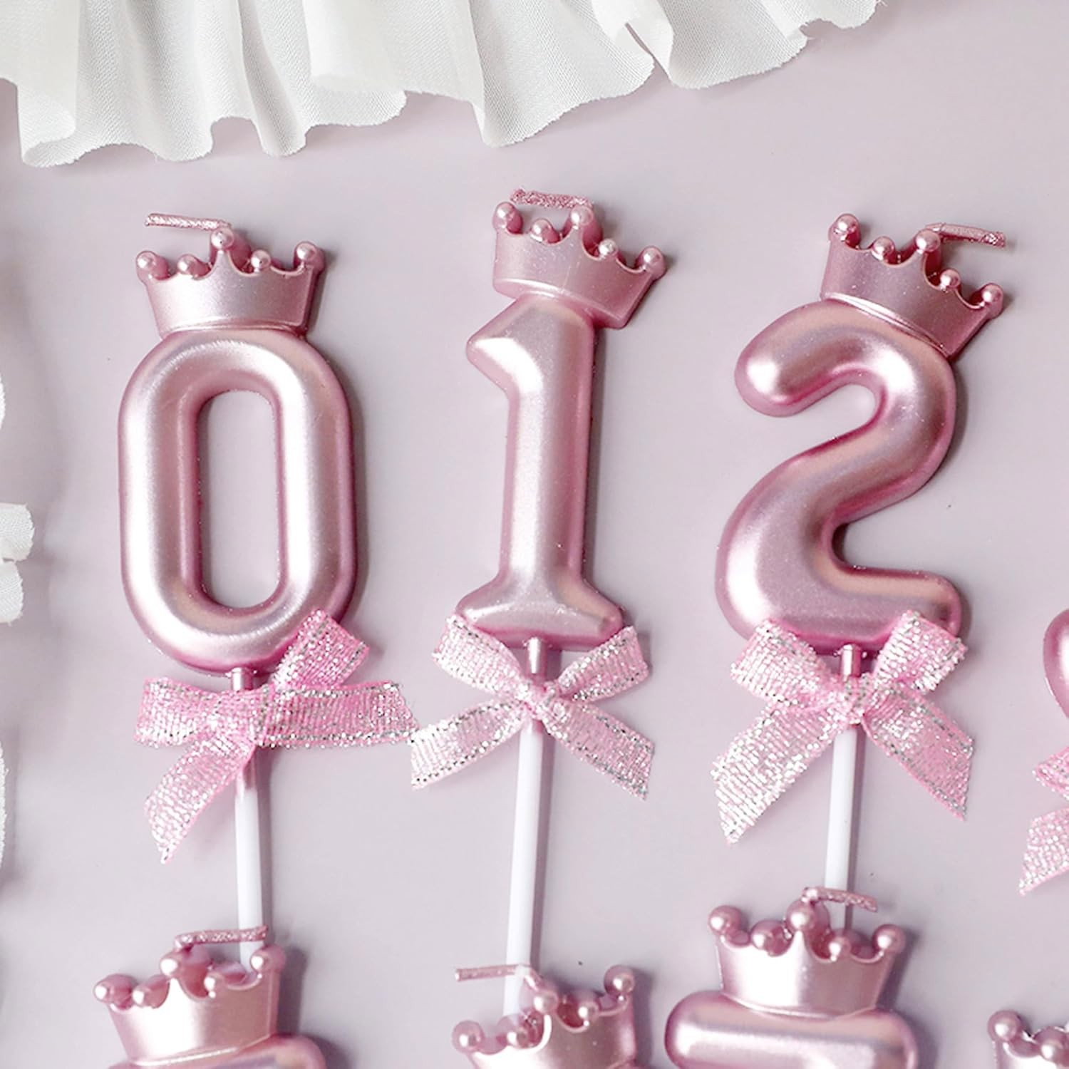 Lumânarea cifră, model coroană cu fundiță, este un accesoriu elegant și strălucitor pentru decorarea torturilor la zile de naștere, aniversări, botezuri sau petreceri tematice.