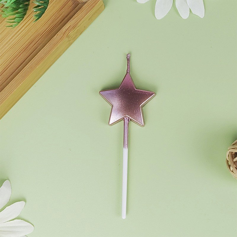Lumanare de Tort, Flippy, Model Steluta, Party, 8.5 x 3.2 cm, Roz Auriu