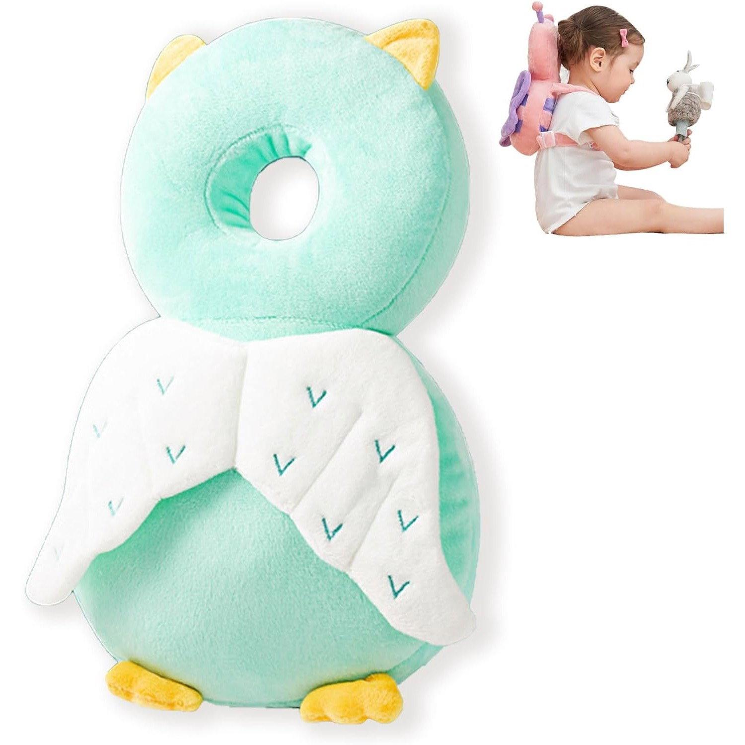 Perna tip Rucsac pentru Protectia Capului, Flippy, Tetiera tip Bufnita, pentru Bebelusi, 33x6x19 cm, 180 g, Verde