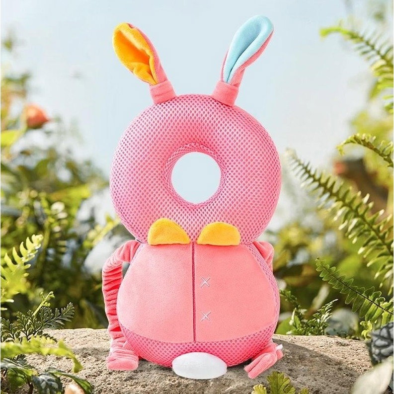Perna tip Rucsac pentru Protectia Capului, Flippy, Tetiera tip Iepure, pentru Bebelusi, Design tip Plasa, 33x6x19 cm, 180 g, Roz