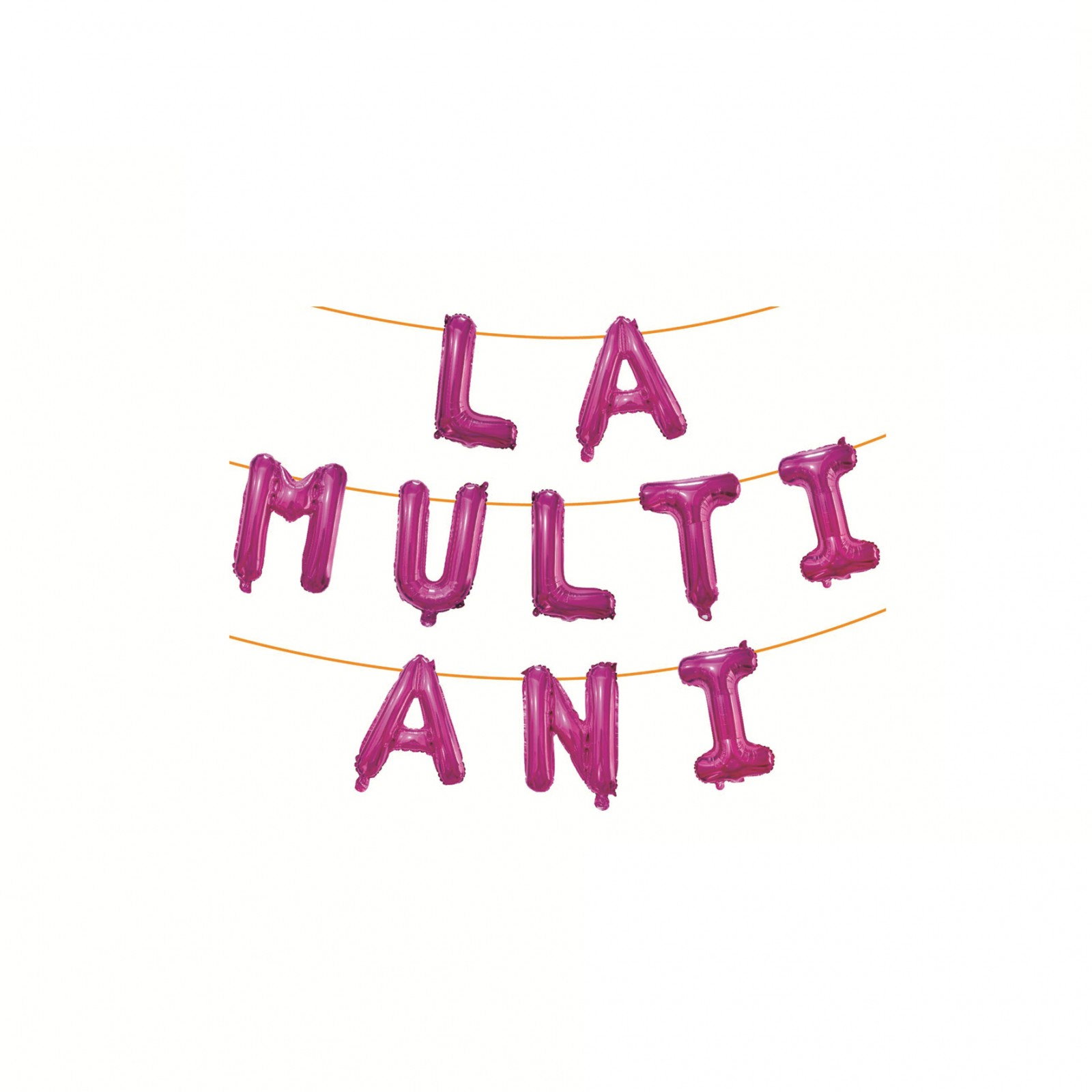 Set 10 Baloane din Folie Metalizata, Flippy, Figurine Litere, Model La multi ani, Tema Aniversare, 40 cm, Ambalaj Individual, Pai Inclus, Umflare cu Aer sau Heliu, Roz