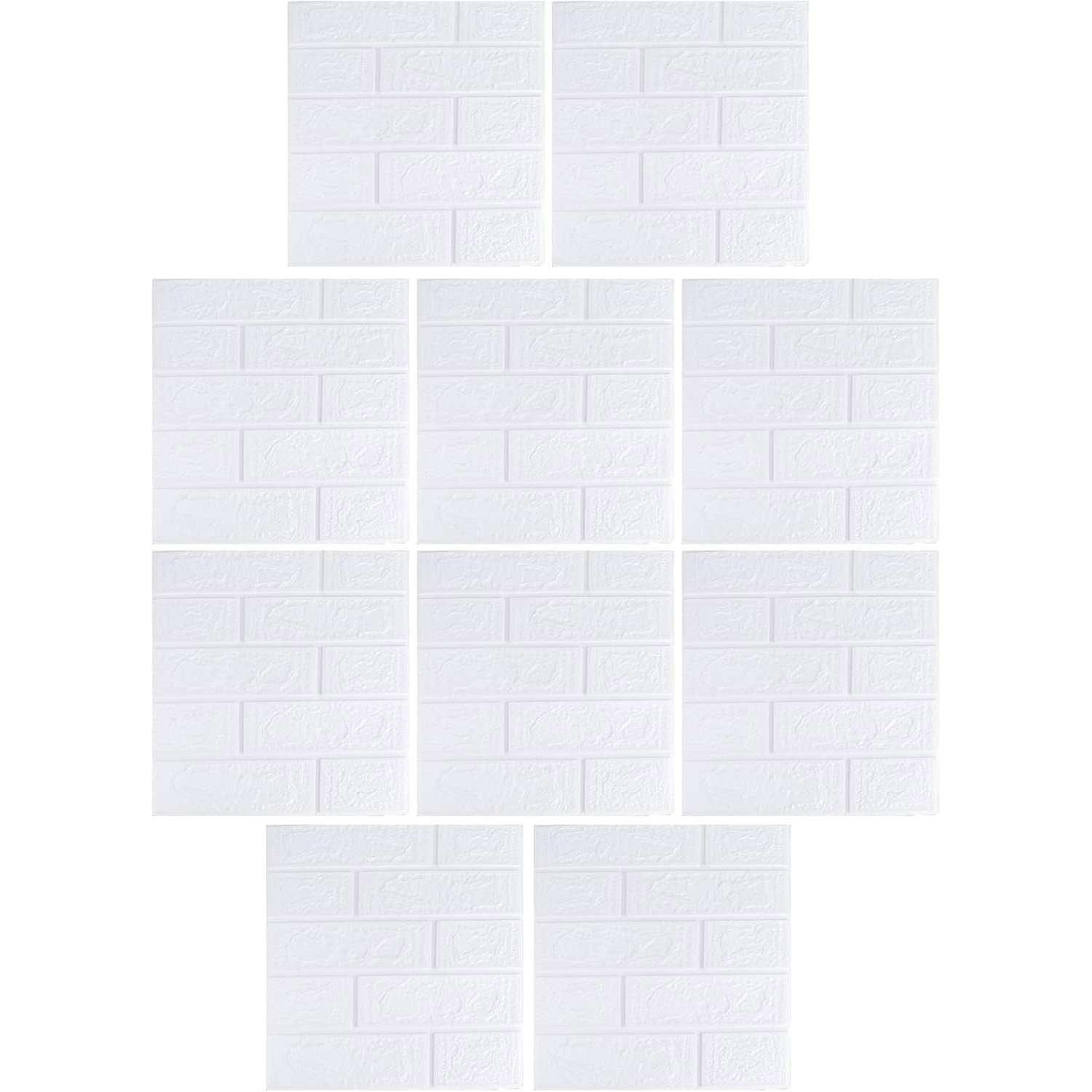 Set 10 Placi Tapet 3D, Flippy, 35 x 38 cm, Grosime 3 mm, din Polietilena, Model Caramida, Suprafata acoperita 1.33 mp, Alb