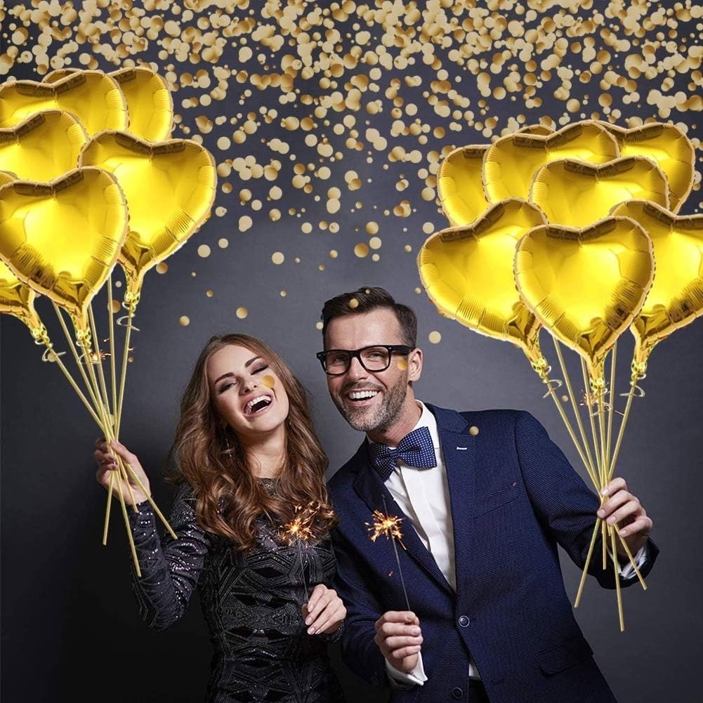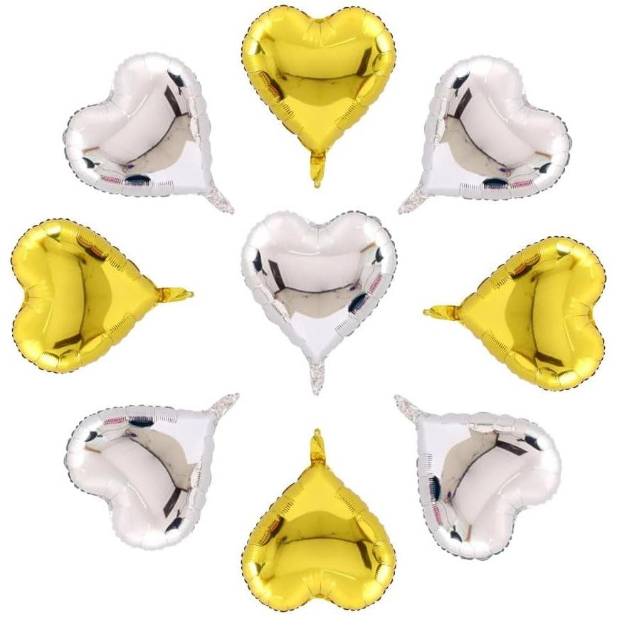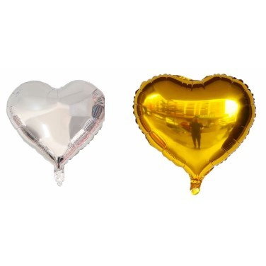 Set 2 Baloane din Folie Metalizata, Flippy, Model Inimi, Tema Ziua Indragostitilor, 45 cm, Ambalaj Individual, Pai Inclus, Umflare cu Aer sau Heliu, Argintiu/Auriu