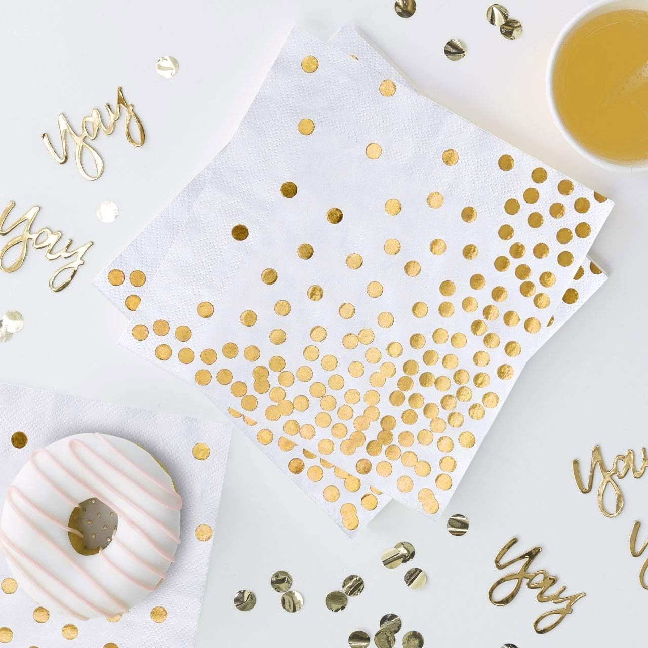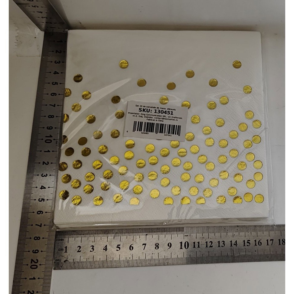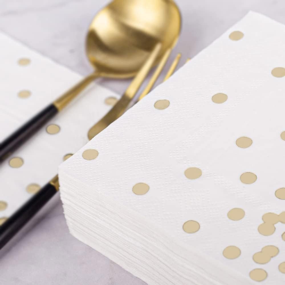 Set 20 de Șervețele de Masă, Flippy, Imprimeu cu Buline Aurii, din Hârtie, 17 x 17 cm