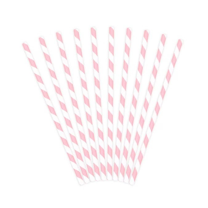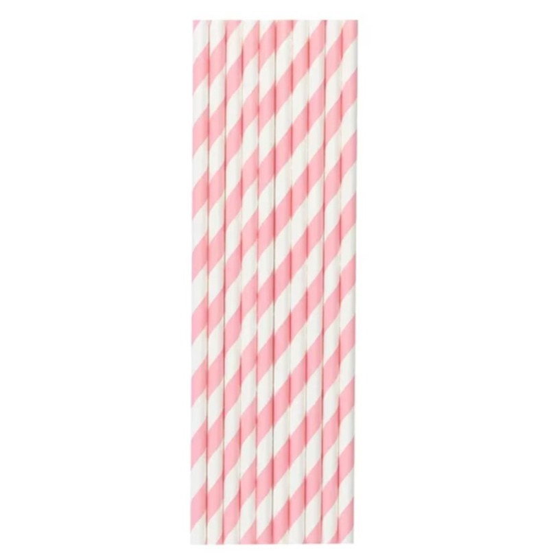 Set 25 Paie, Flippy, din Hartie, 20 cm, Model cu Dungi, Alb/Roz