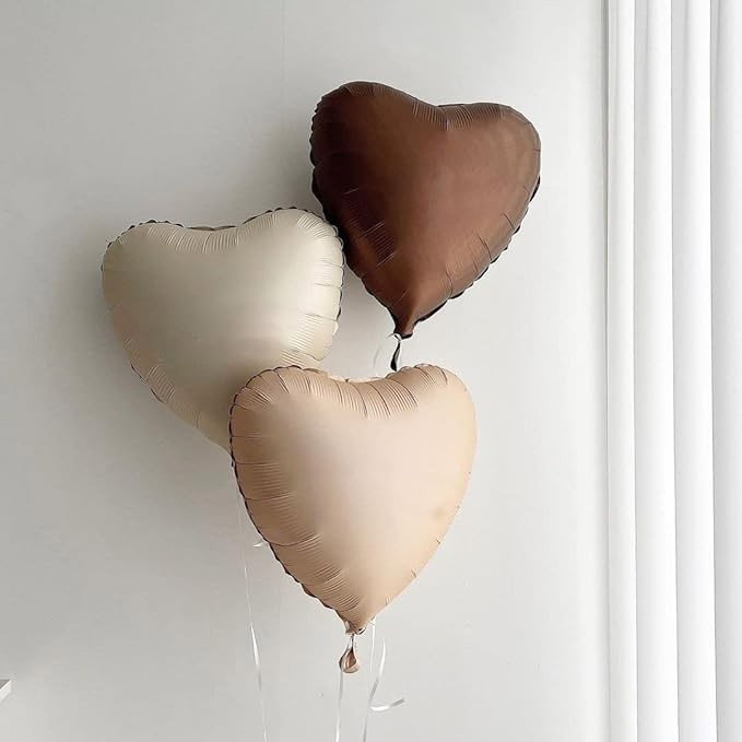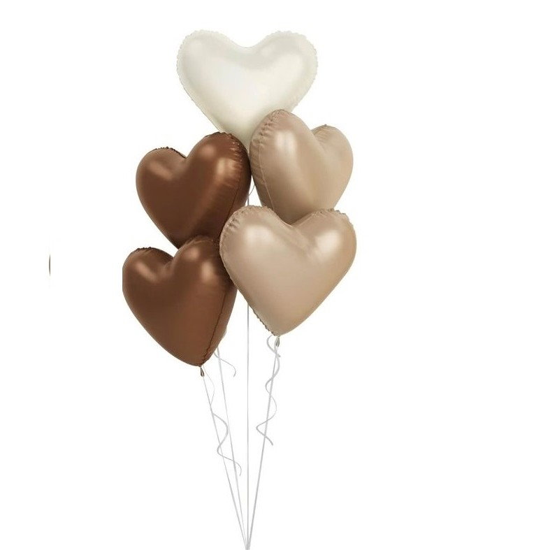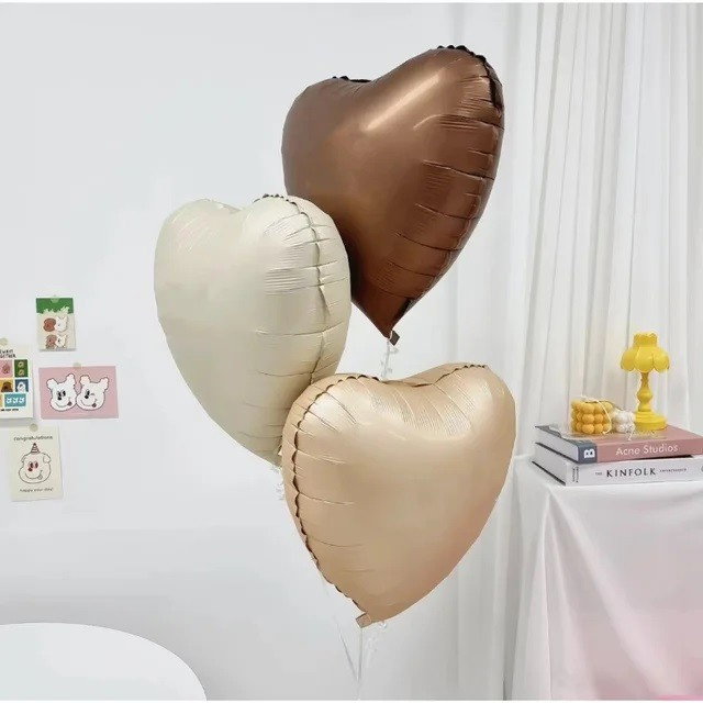 Set 3 Baloane din Folie Metalizata, Flippy, Figurine Inimi, Tema Ziua Indragostitilor, 45 cm, Ambalaj Individual, Pai Inclus, Umflare cu Aer sau Heliu, Crem/Maro