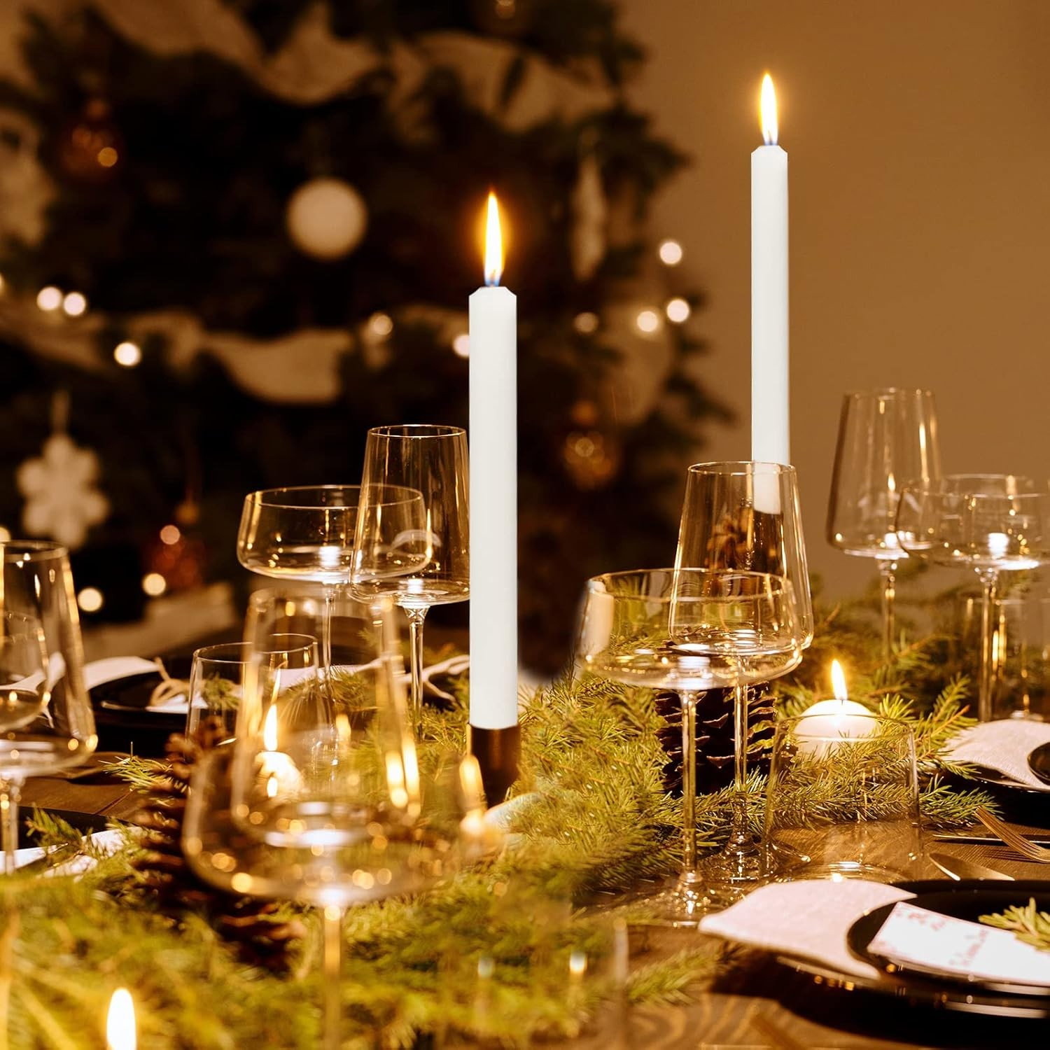 Aceste lumânări elegante sunt ideale pentru cine romantice, decorarea mesei sau evenimente speciale. Cu un design simplu și sofisticat, oferă o lumină caldă și plăcută, fără miros, fum sau picurare.