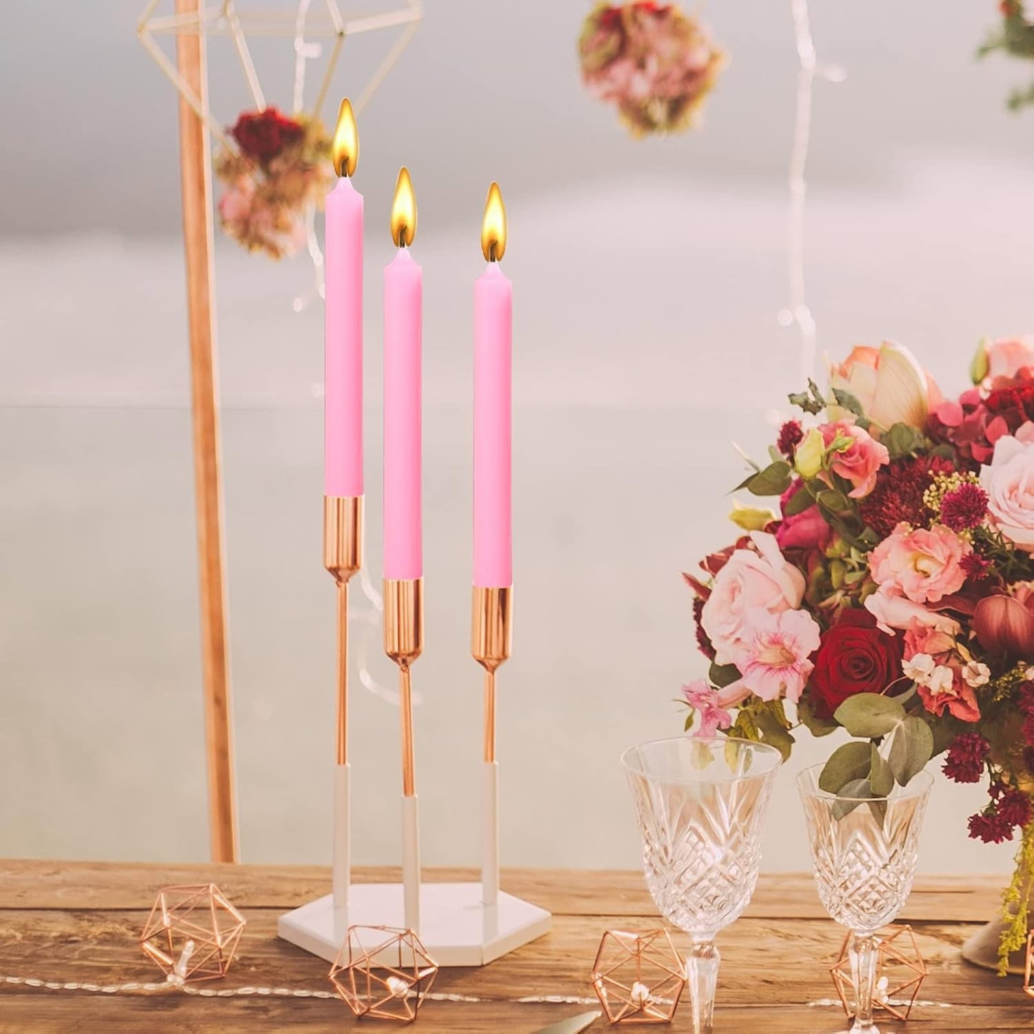 Aceste lumânări elegante sunt ideale pentru cine romantice, decorarea mesei sau evenimente speciale. Cu un design simplu și sofisticat, oferă o lumină caldă și plăcută, fără miros, fum sau picurare.