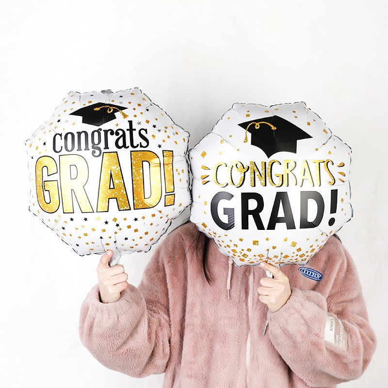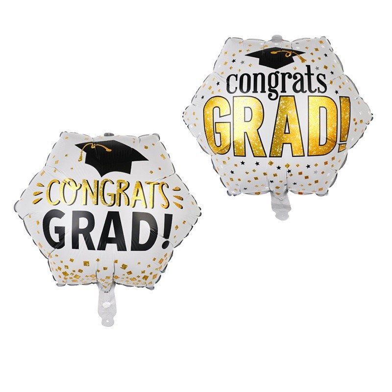 Set 8 Baloane din Folie Metalizată si din Latex, Flippy, Figurine Soare 77x67cm, Stea si Hexagon 45 cm, Baloane Latex 30 cm, Tema Absolvire, Ambalaj Individual, Pai Inclus, Umflare cu Aer sau Heliu, Multicolor