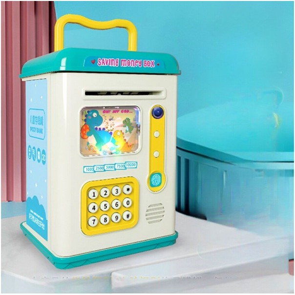 Funcționează ca un mini seif electronic – copiii pot introduce bancnote, care sunt trase automat în interior, și pot păstra și monedele în compartimentul special.
