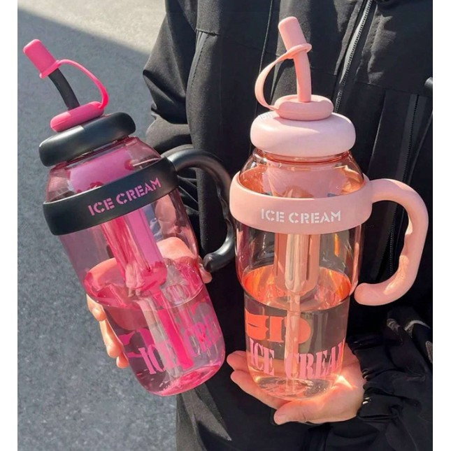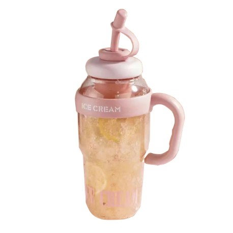 Descriere Produs: Sticlă de Apă Flippy Transparentă, 1400 ml, cu Pai și Capac Roz deschis