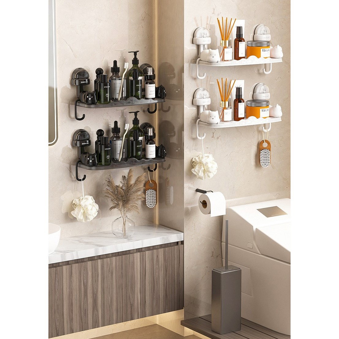 Spațiu de depozitare eficient: Perfect pentru organizarea produselor de îngrijire personală, cum ar fi săpunuri, șampon, balsam sau alte accesorii esențiale, ajutându-te să îți menții baia ordonată și ușor accesibilă.