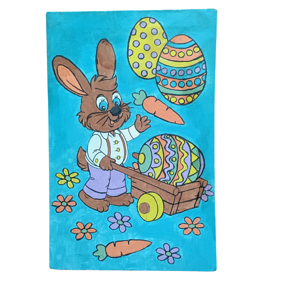 Incurajati creativitatea si imaginatia copiilor bucurandu-va impreuna de magia sarbatorilor de Paste cu acest set de pictura pe numere cu iepurasul