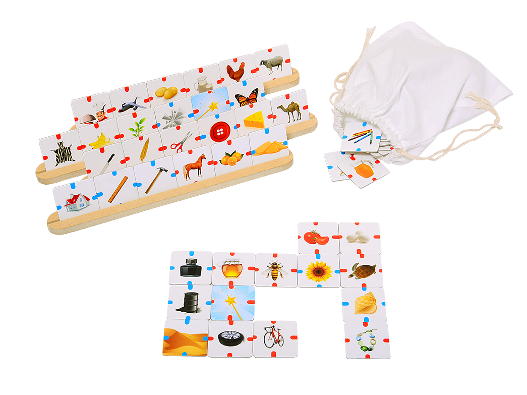 90 de piese cu imagini, care servesc drept elemente esentiale pentru rezolvarea sarcinilor din joc