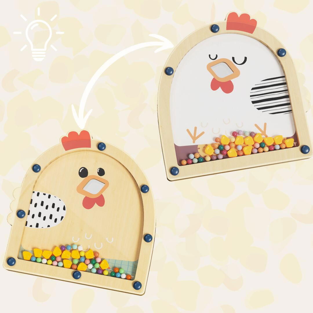 Rasfata-ti copilul cu Joc Montessori - Hraneste gaina, un joc educativ si imaginativ din lemn care combina distractia cu invatarea. Construit sub forma unei gaini dragute, acest joc inovativ invita copiii sa participe la un joc de hranire, imbunatatind abilitatile motorii fine si coordonarea mana-ochi. Avand la baza principiile Montessori, acest joc este un instrument exceptional pentru invatare educationala si joaca senzoriala.