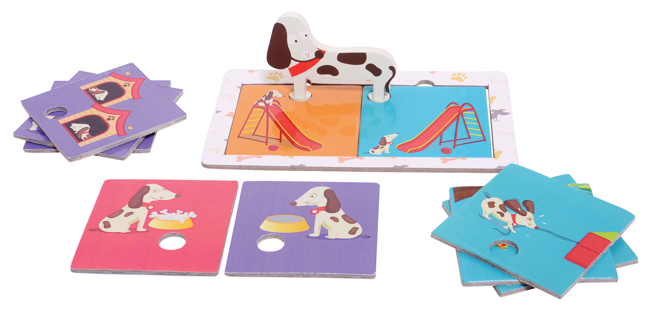 Catelusul cel istet stie care-i stanga si care-i dreapta si ce-i bine si ce-i rau! El descopera imediat cine e fericit si cine e suparat. Alatura-te catelusului istet intr-un joc deosebit de potrivire cu notiuni opuse.