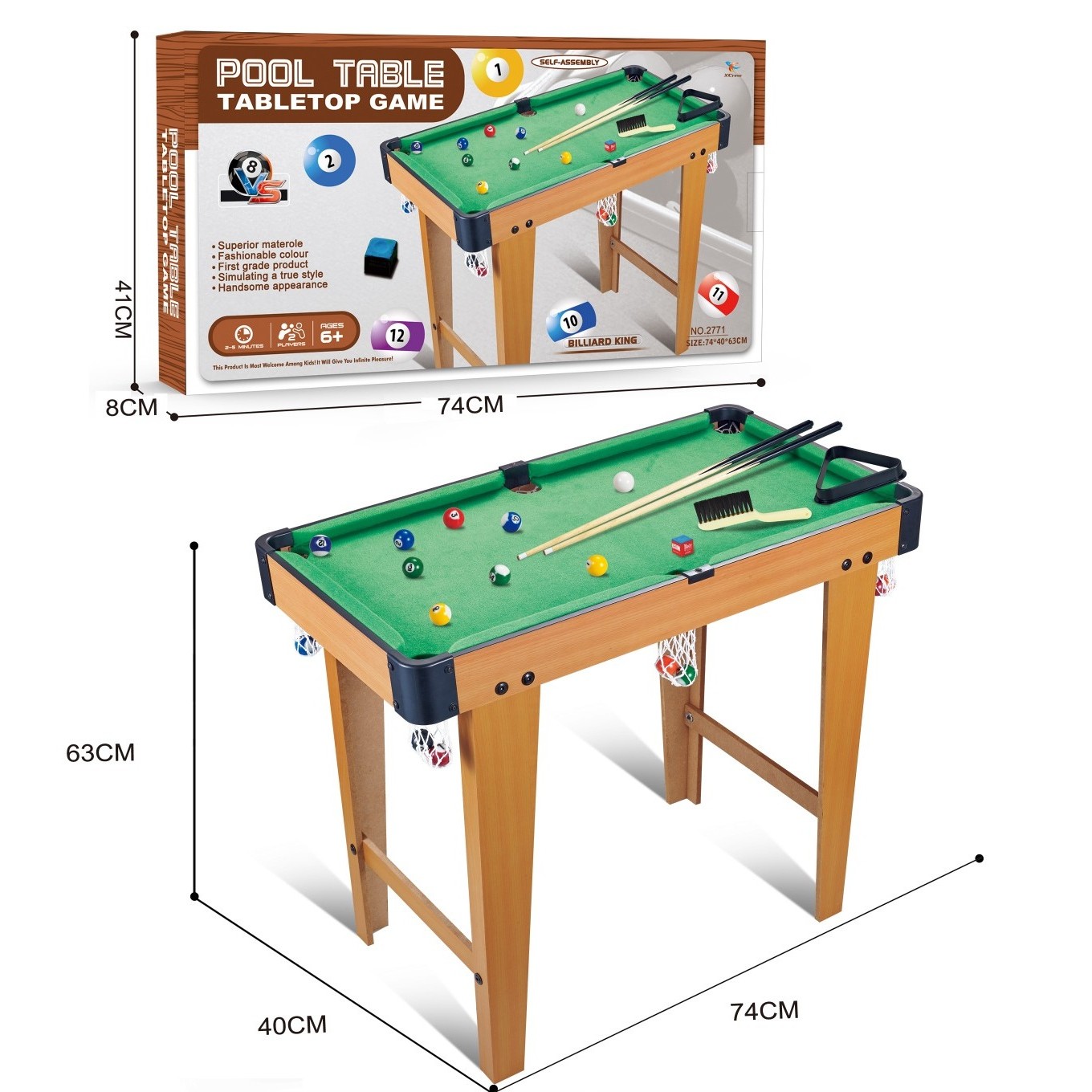 Masa de Biliard cu Picioare, Flippy, pentru Copii, +6 Ani, 74 x 63 x 40 cm, din Lemn/ABS, Maro/Verde