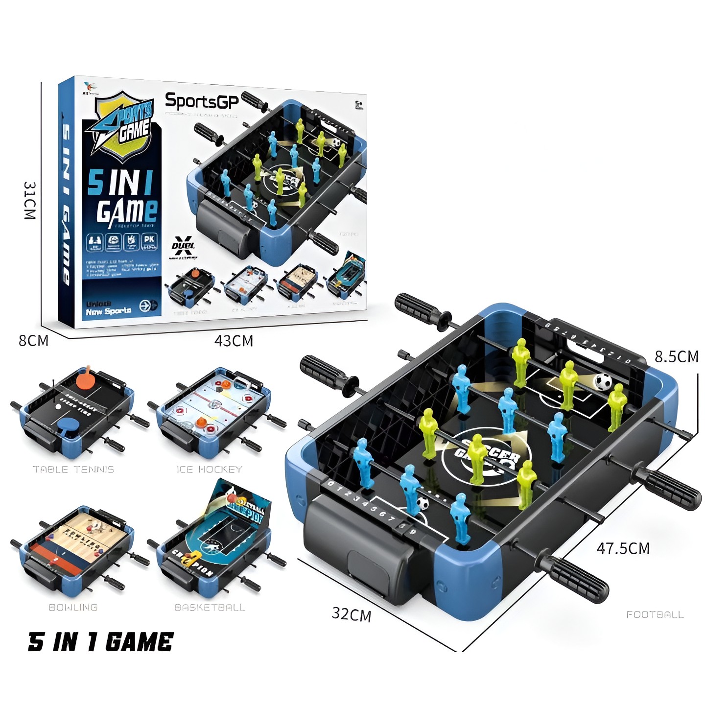 Aceasta masa este un joc 5in1 datorita interfatelor ce se schimba astfel avand 5 jocuri diferite: Fotbal, Basket, Bowling, Curling si Hockey