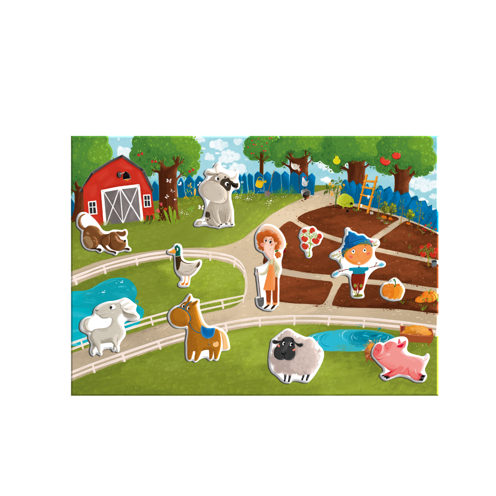 copiii pot plasa magneti pe plansa, pot invata cuvinte noi cu tematica ferma sau pot inventa povesti interesante despre viata la ferma